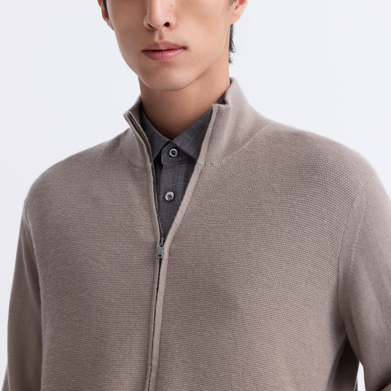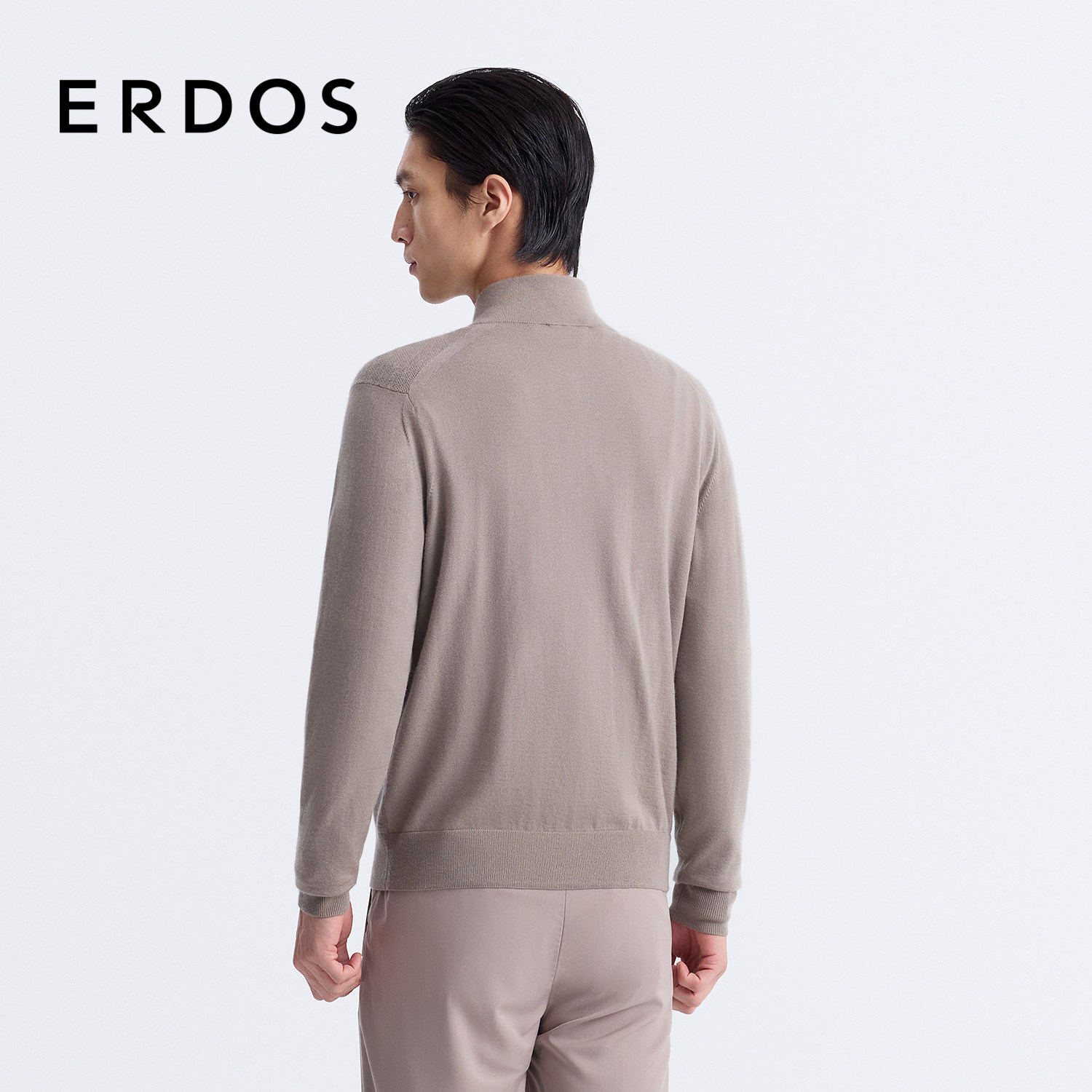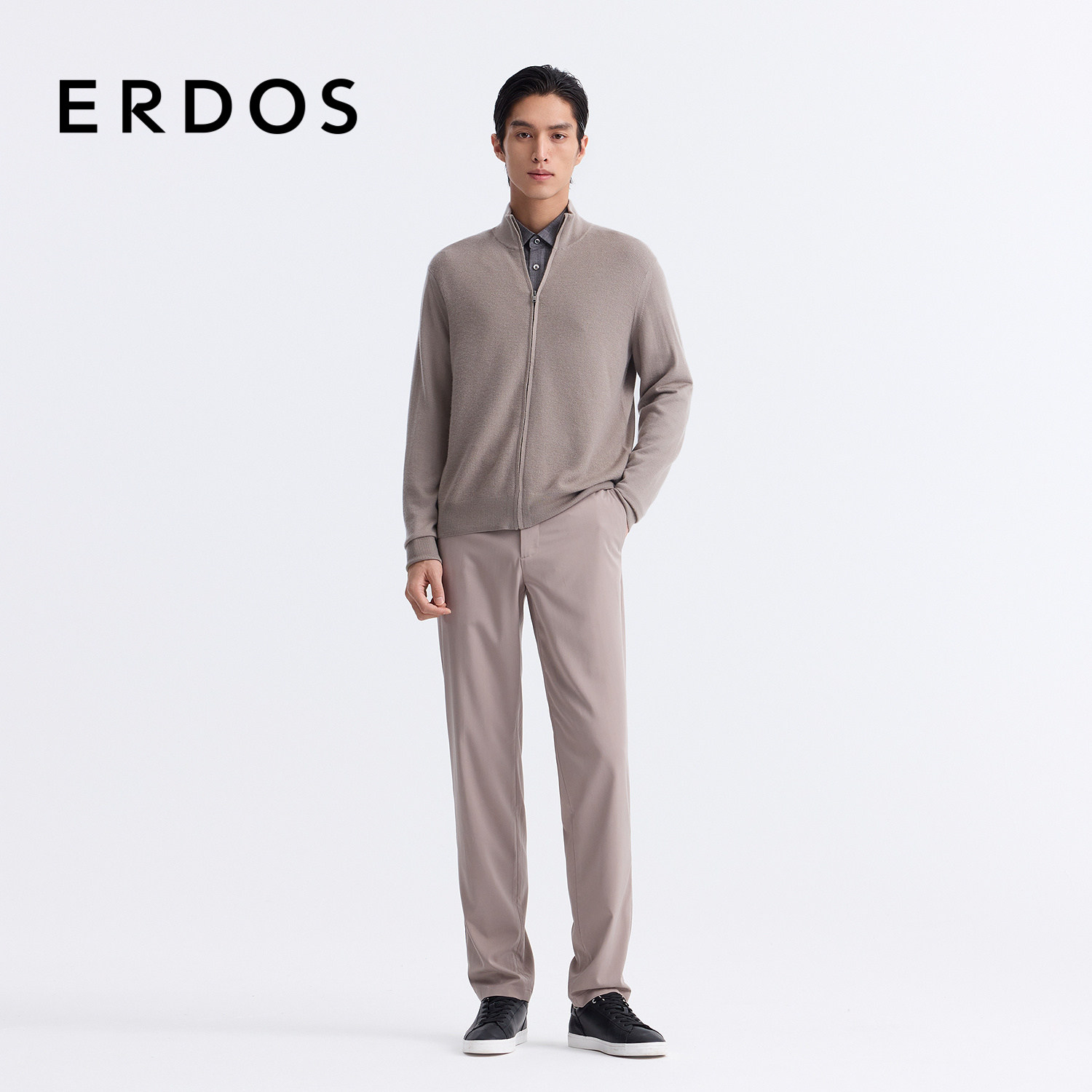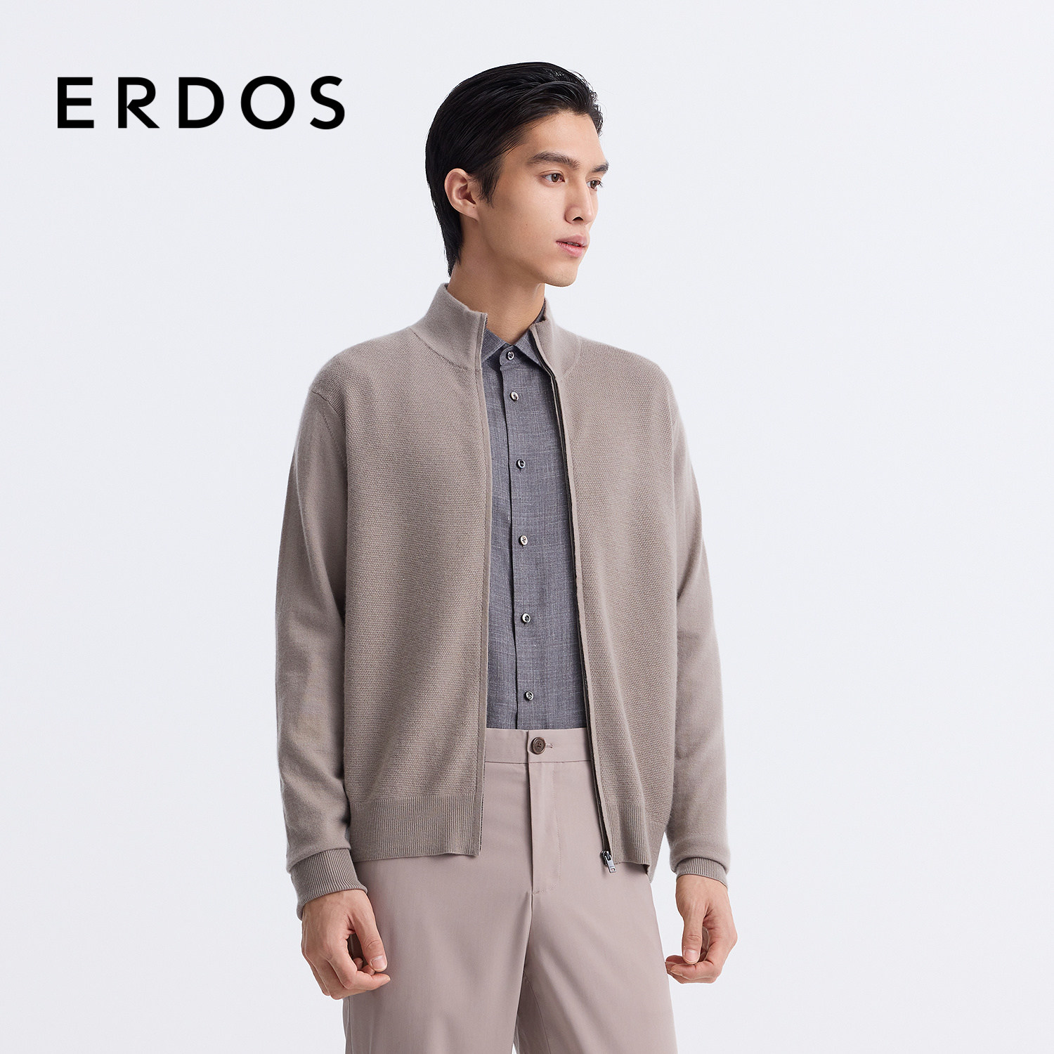 ERDOS 男装羊绒开衫25年新品棕色精纺立领翻花夹克版型商务休闲