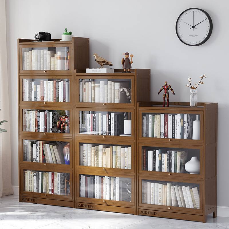 书架置物架落地多层书柜子带门儿童学生书橱家用收纳架一件起批
