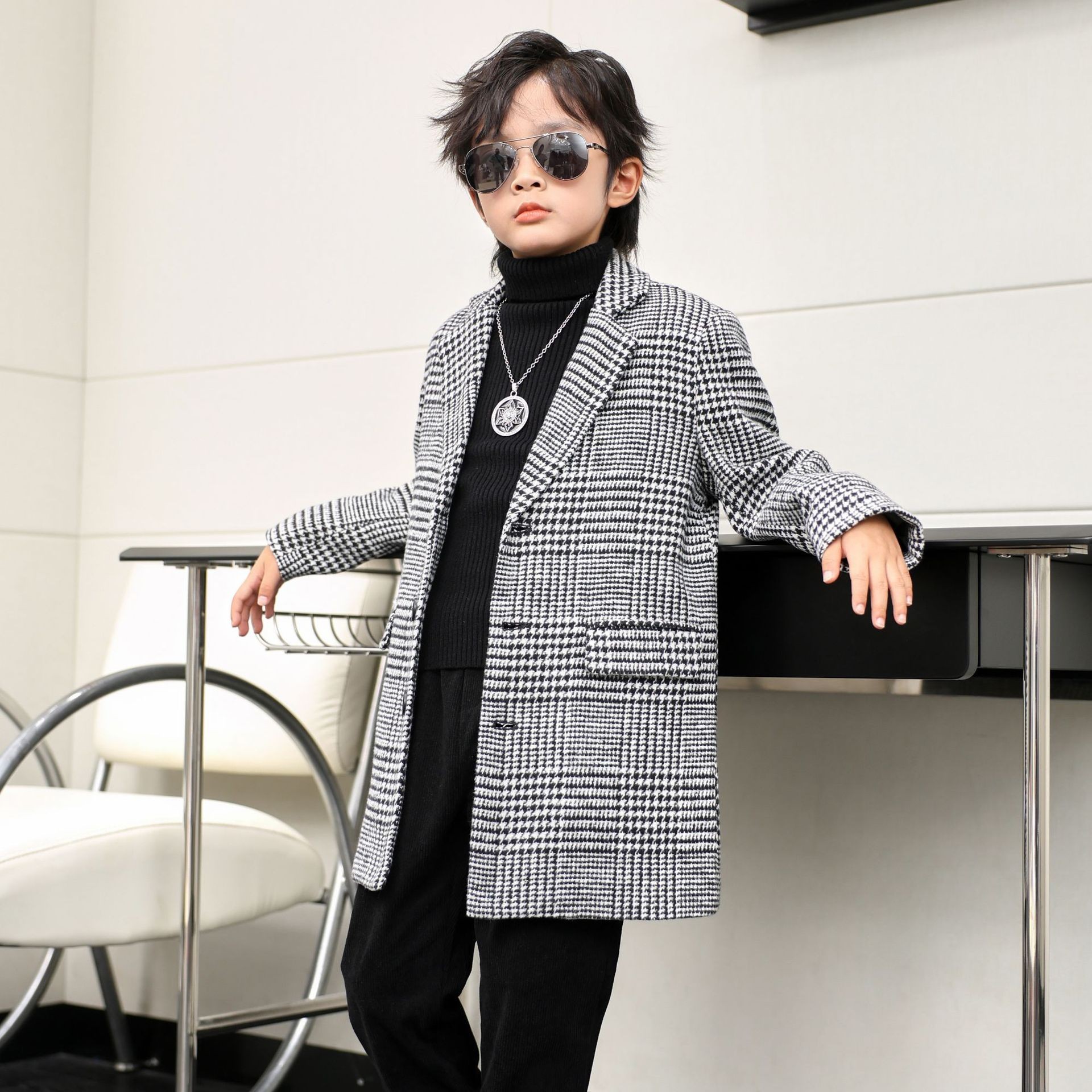 男童毛呢大衣洋气中大童外套韩版双面羊绒风衣儿童男孩中长款呢子