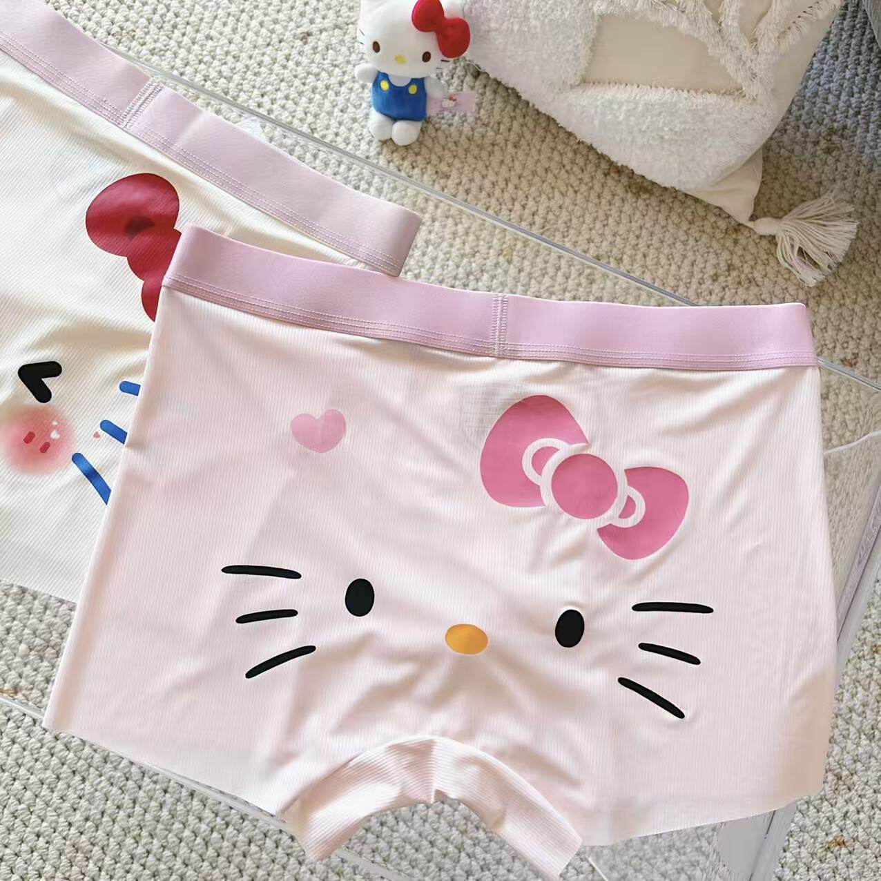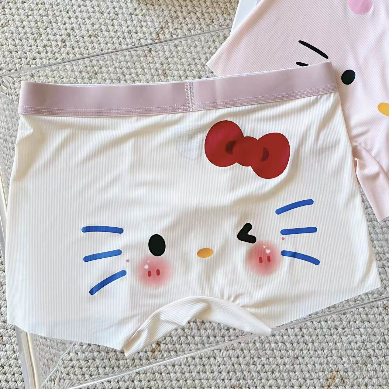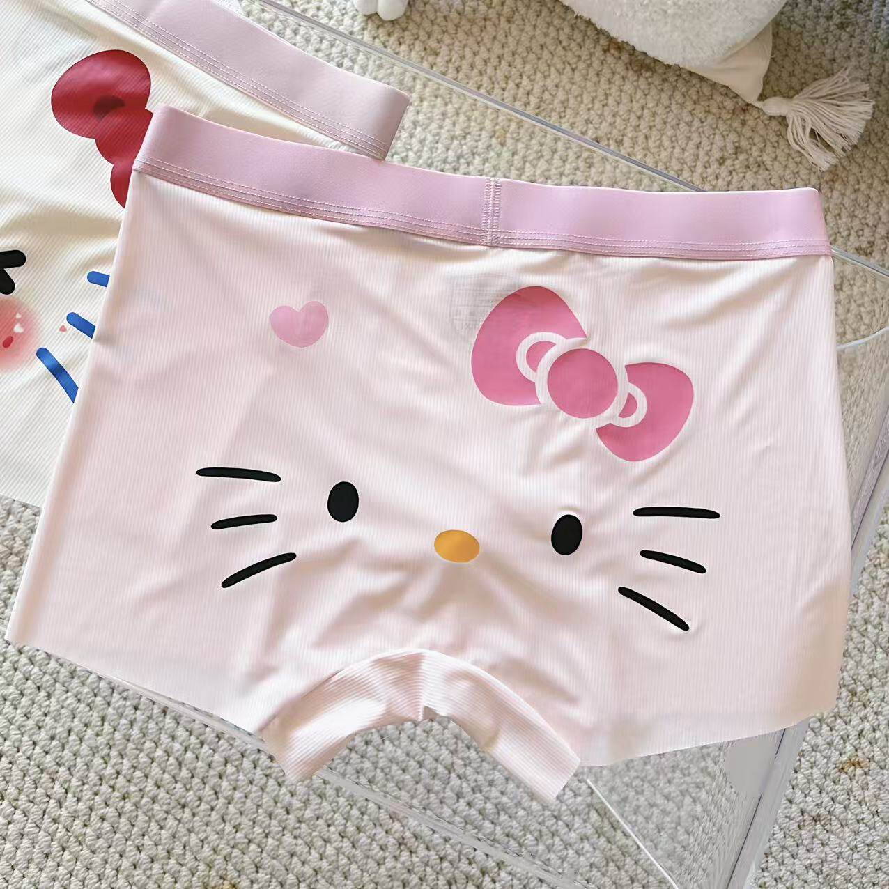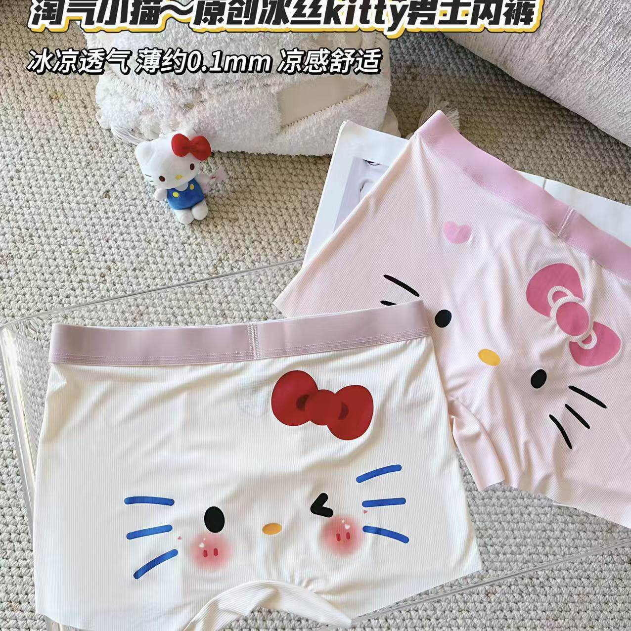 淘气小猫~原创卡通凯蒂猫印花冰丝甜美粉色四角内裤送男友透气