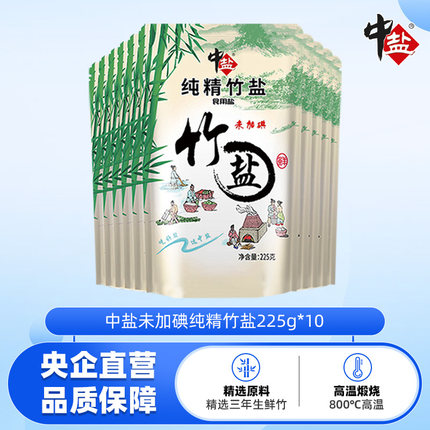 【10袋】中盐未加碘纯精竹盐无碘食用盐家用海盐熟盐家用225g