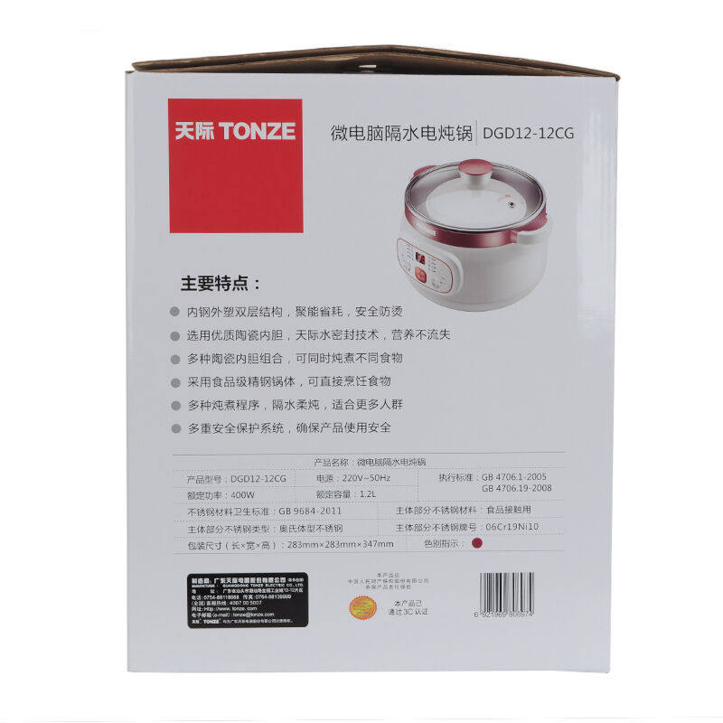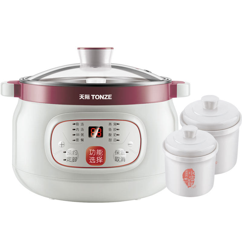 天际 不锈钢隔水炖煲汤盅 白瓷电炖锅BB煲迷你小炖锅一锅三胆预约