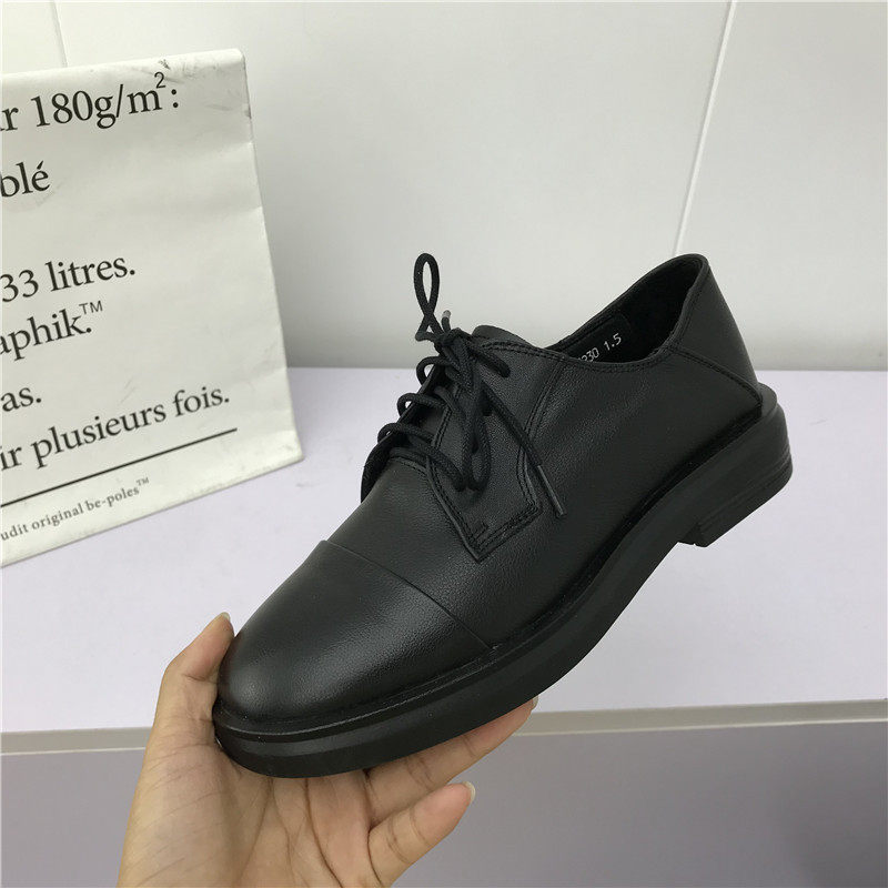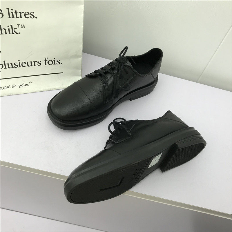 外贸撤柜清仓英伦风真皮系带方跟小皮鞋圆头舒适工作鞋加绒女棉鞋