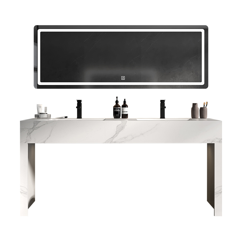 岩板双盆浴室柜组合落地洗手台公共卫生间洗漱洗脸陶瓷盆大尺寸