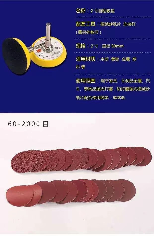 电钻用植绒砂纸片电磨用圆盘砂纸打磨砂纸片2寸背绒片打磨抛光片