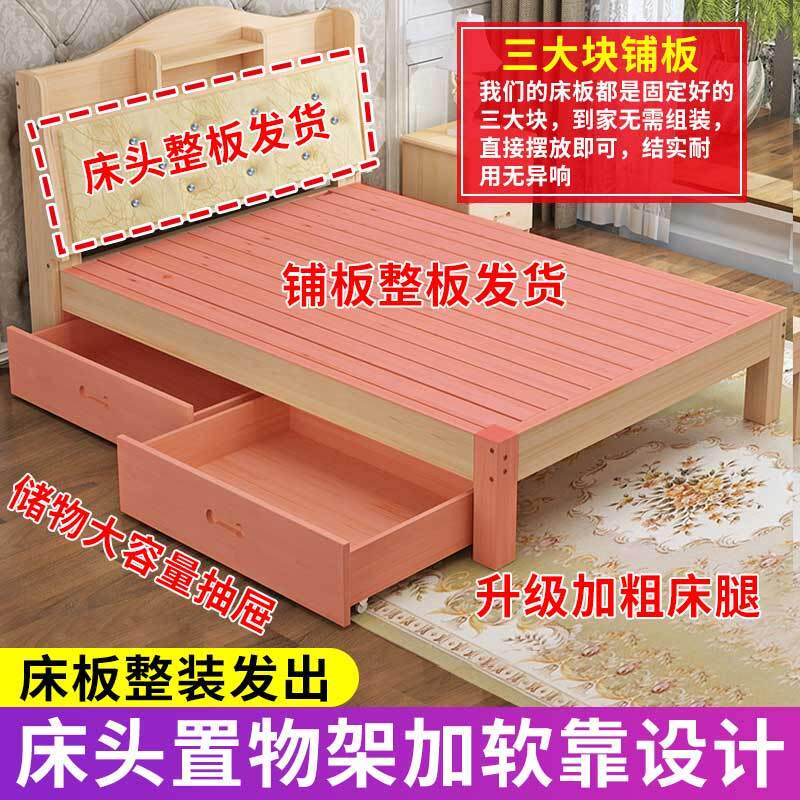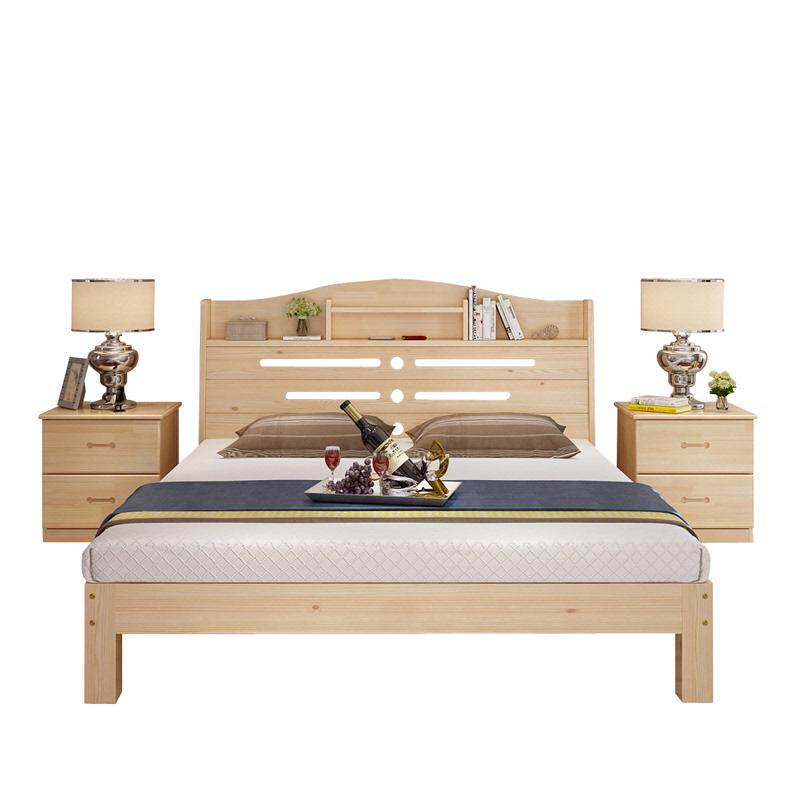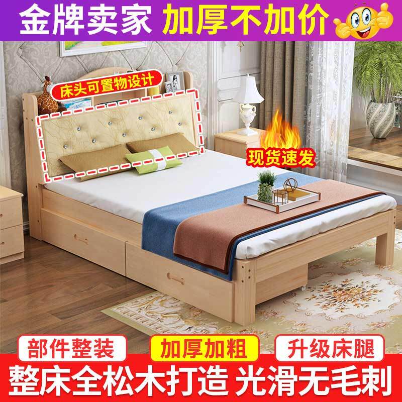 实木松木床1.5米双人床1.8m现代简约带书架床简易租房储物床床架