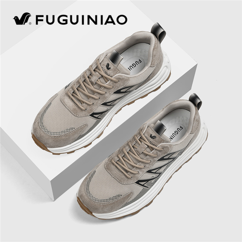 富贵鸟男鞋夏季透气2025新款休闲防臭网面网鞋厚底减震跑步运动鞋