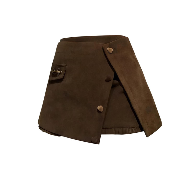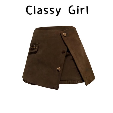 咖色美拉德穿搭半身裙女秋冬设计感爱心纽扣开叉短裙防走光裙裤