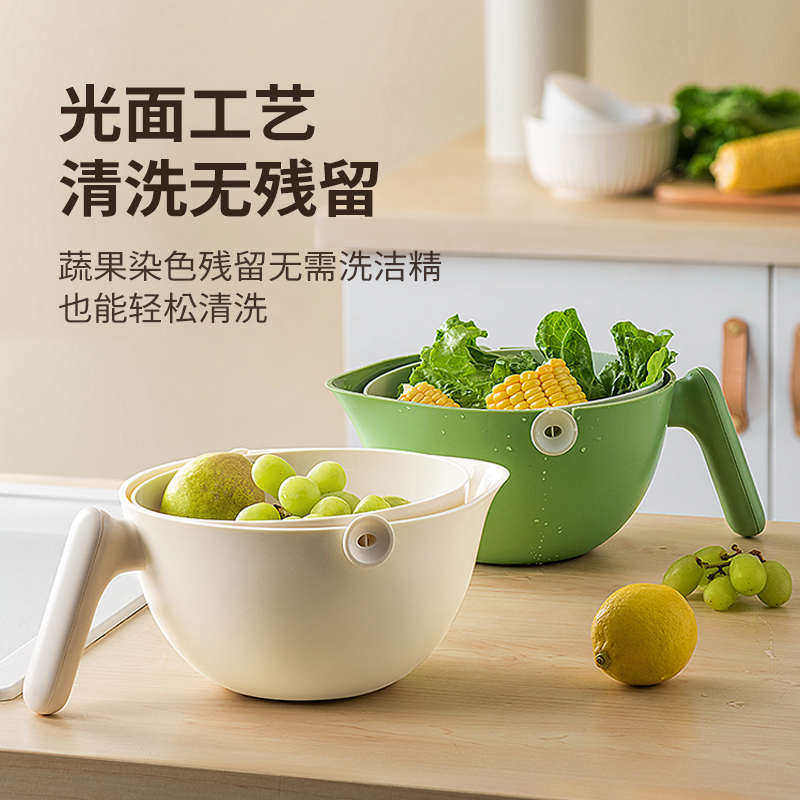 带手柄双层洗菜盆沥水篮水果盘洗菜篮滤水厨房可旋转多功能漏水筐