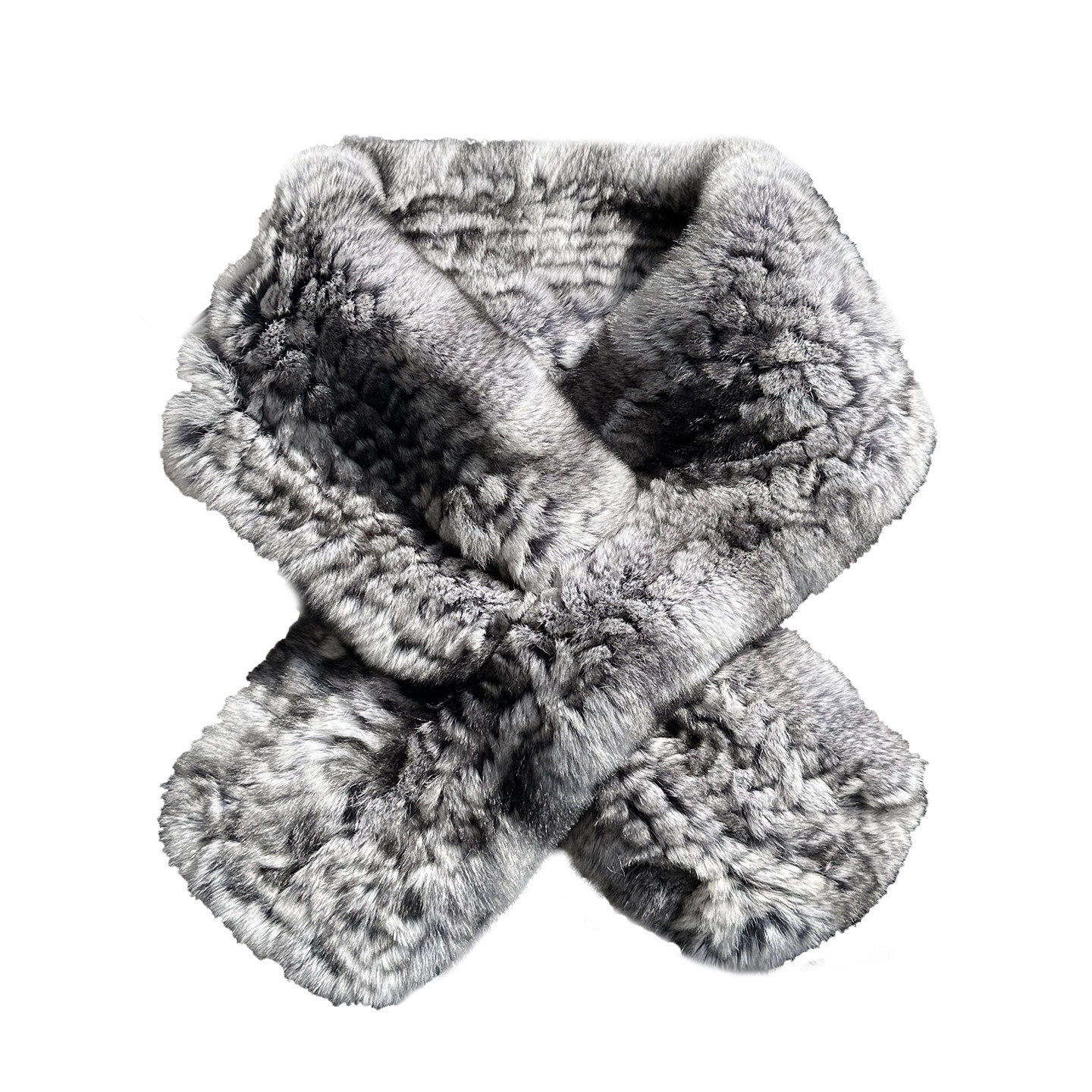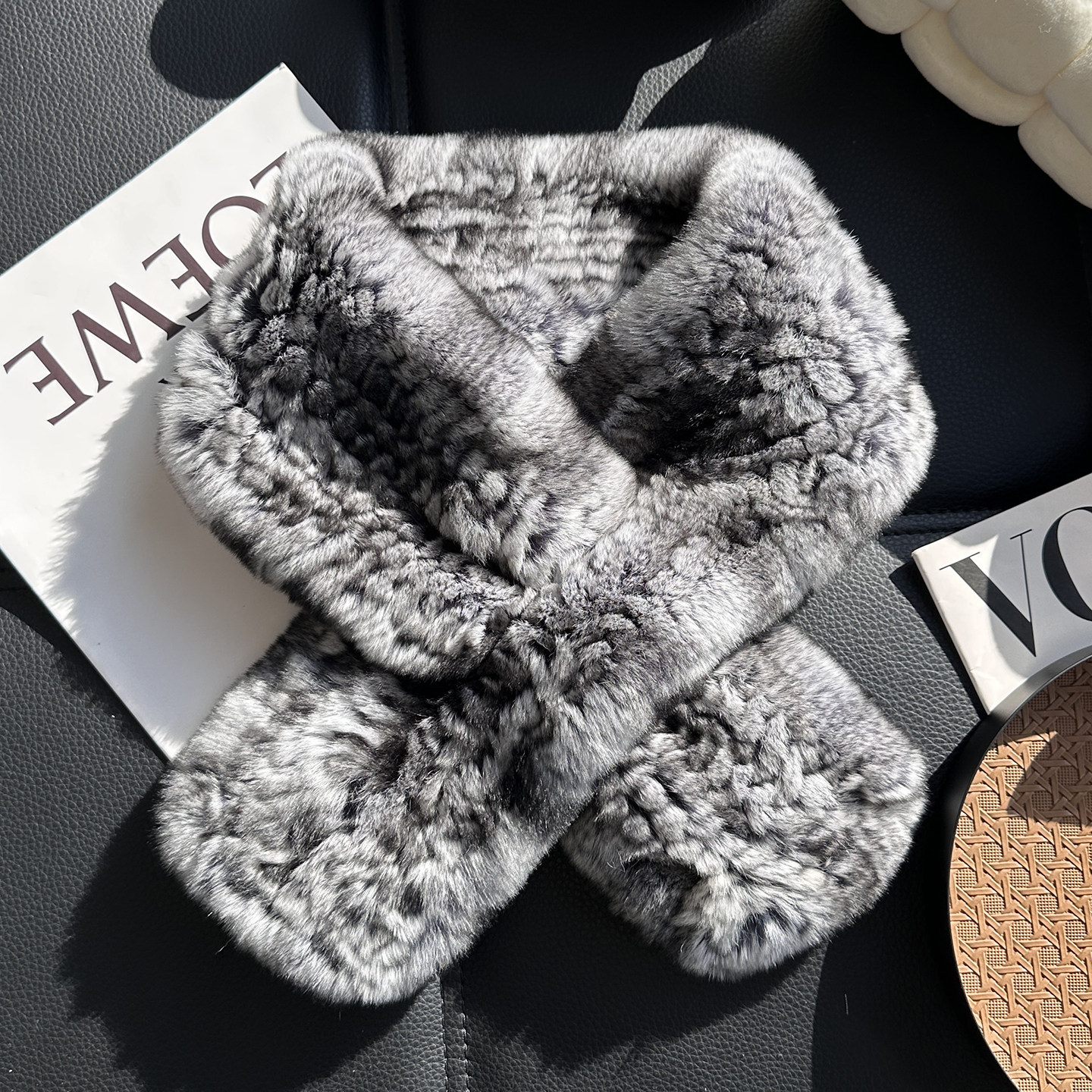 青紫蓝獭兔毛双面编织皮草围巾韩版简约毛毛交叉保暖加厚真毛围脖