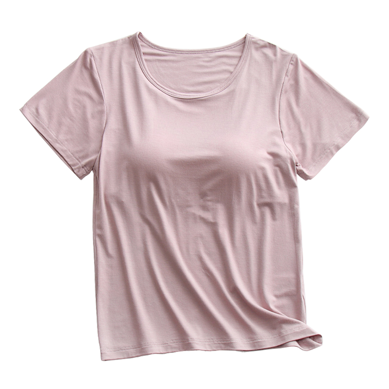 带胸垫短袖t恤女夏薄款莫代尔睡衣家居服大码宽松可外穿半袖上衣