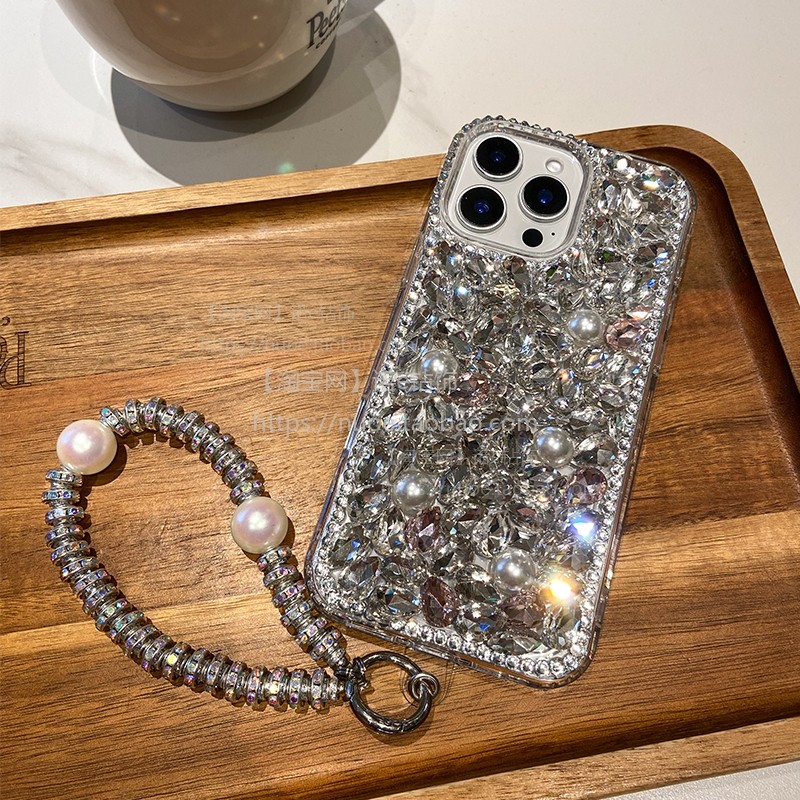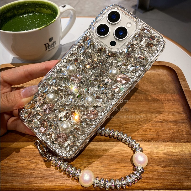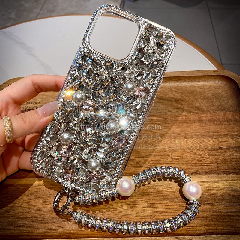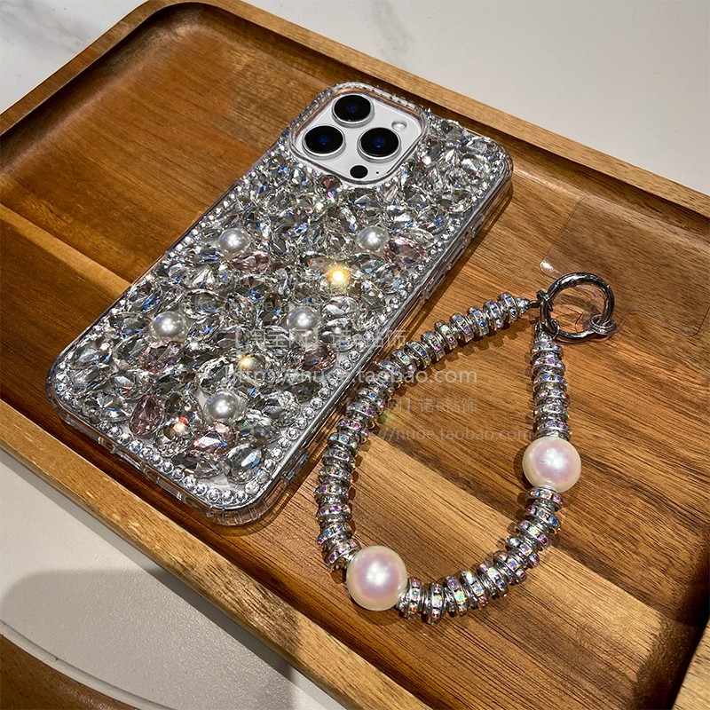 奢华水钻适用苹果16promax手机壳17新款Air高颜值iPhone15全包防摔14pro高级感女13带挂绳plus手工满钻12外壳