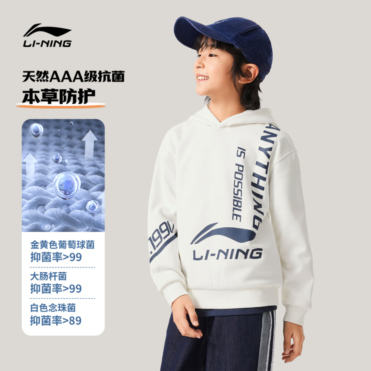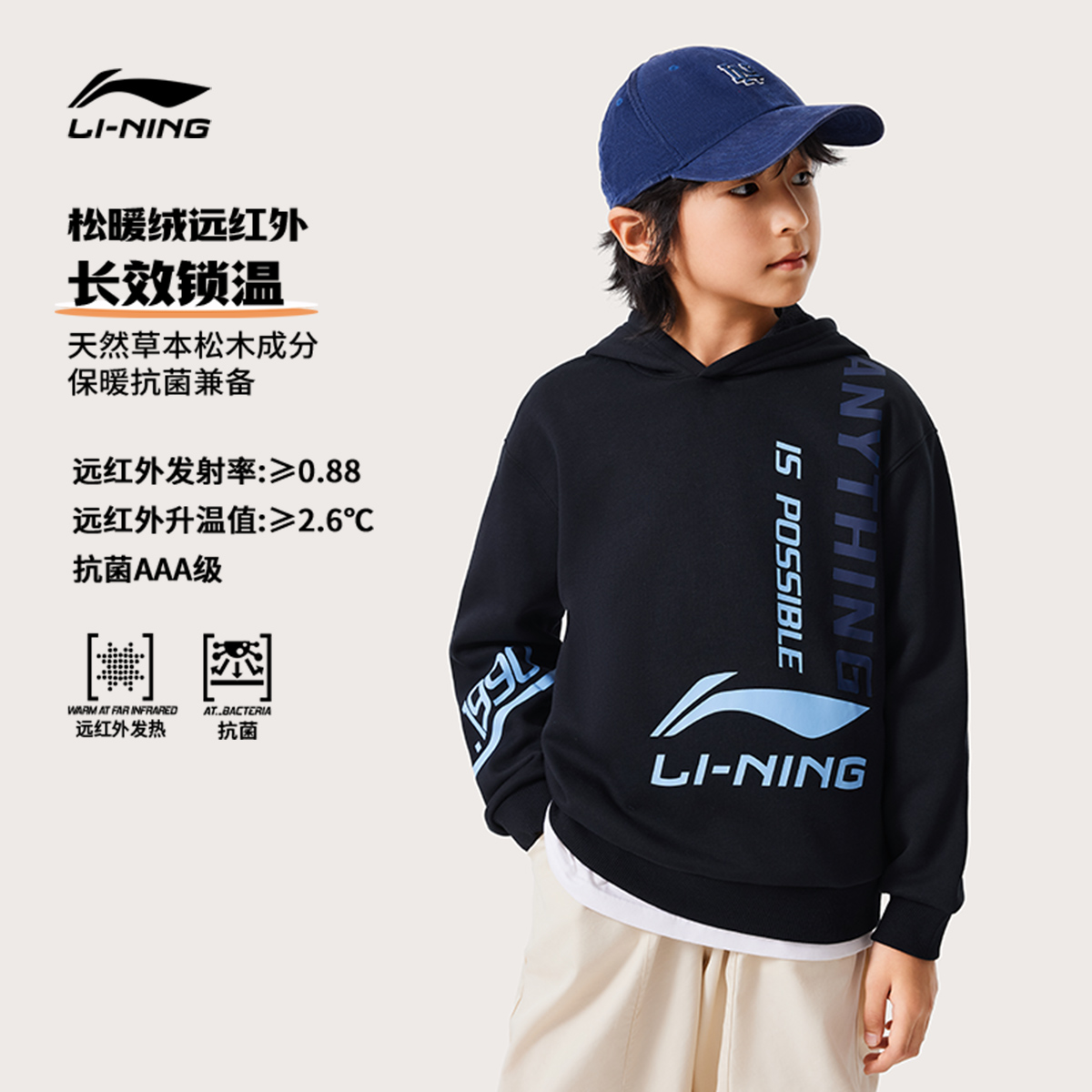 远红外保暖科技李宁儿童加绒卫衣