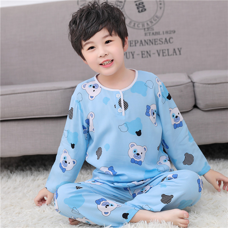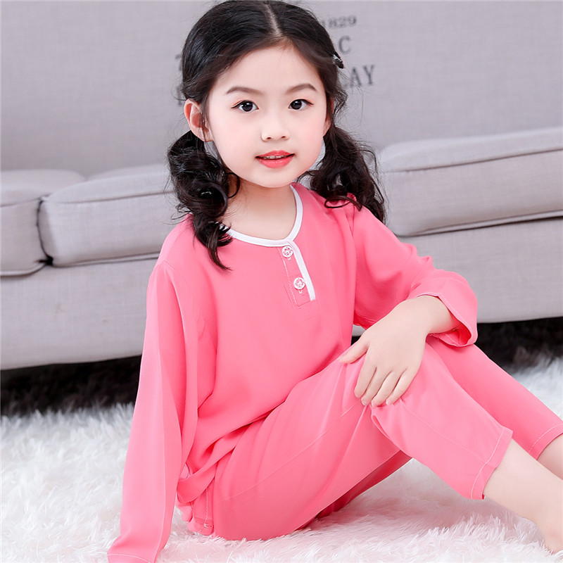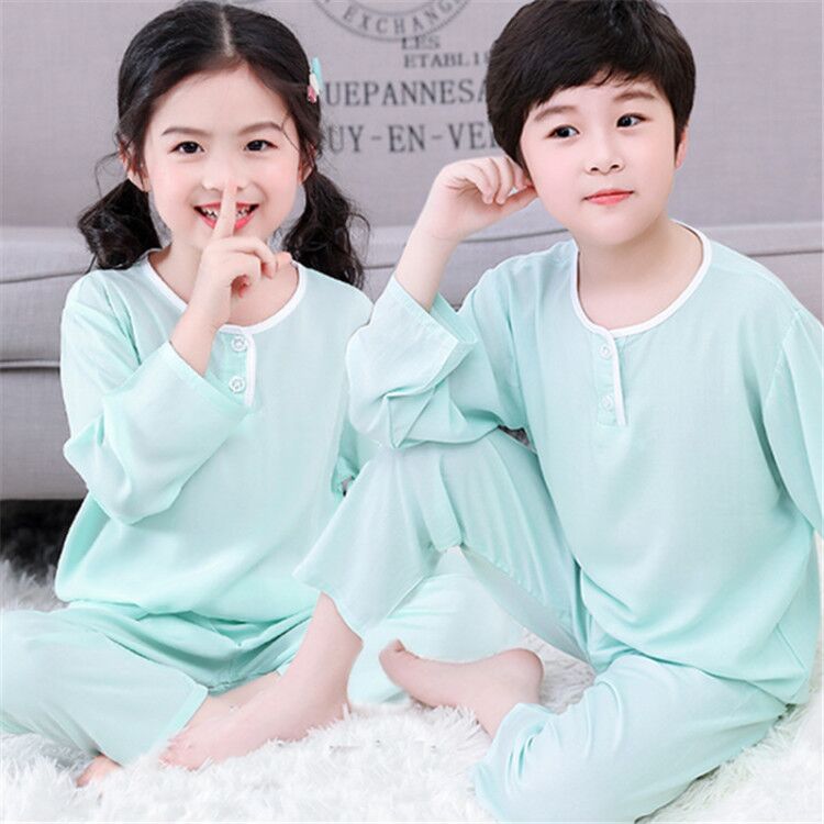 儿童绵绸睡衣套装夏季男孩女童薄款长袖宝宝小孩子棉绸空调服套装