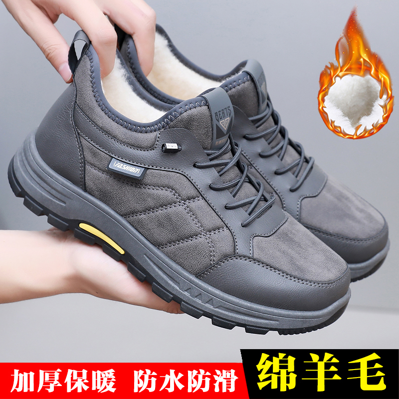 2025新款冬季老北京棉鞋加绒加厚一脚蹬爸爸鞋保暖防滑棉靴雪地靴