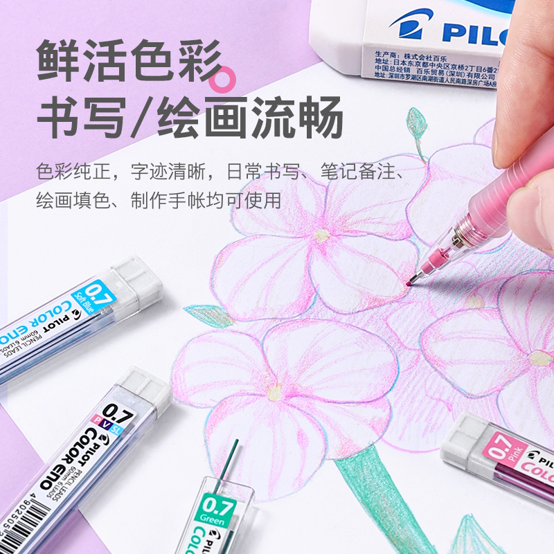 百乐官方旗舰店Pilot日本Color ENO彩色自动铅芯0.7mm自动铅笔彩铅PLCR-7