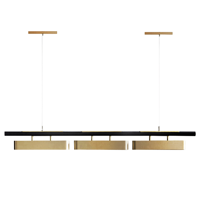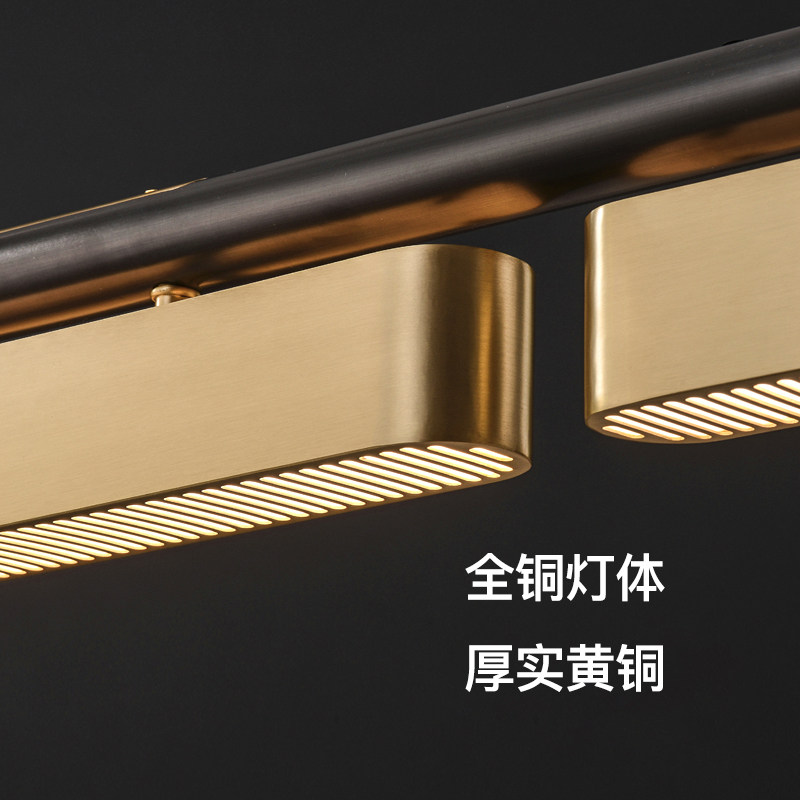 全铜餐厅吊灯一字长条餐桌吧台灯新中式轻奢三头极简茶室led吊灯