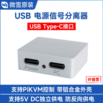 微雪 USB电源信号分离器 支持PiKVM树莓派控制 Type-C母口供电