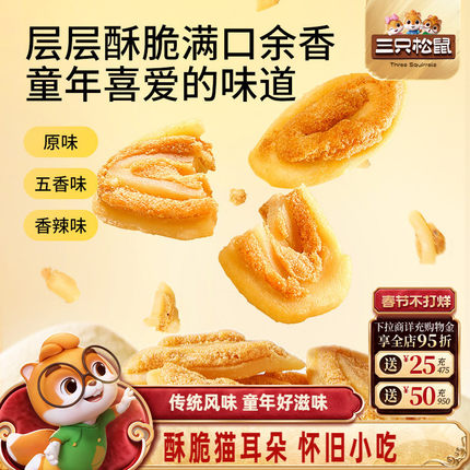 三只松鼠猫耳朵500g混合味童年酥脆怀旧网红爆款休闲夜宵零食