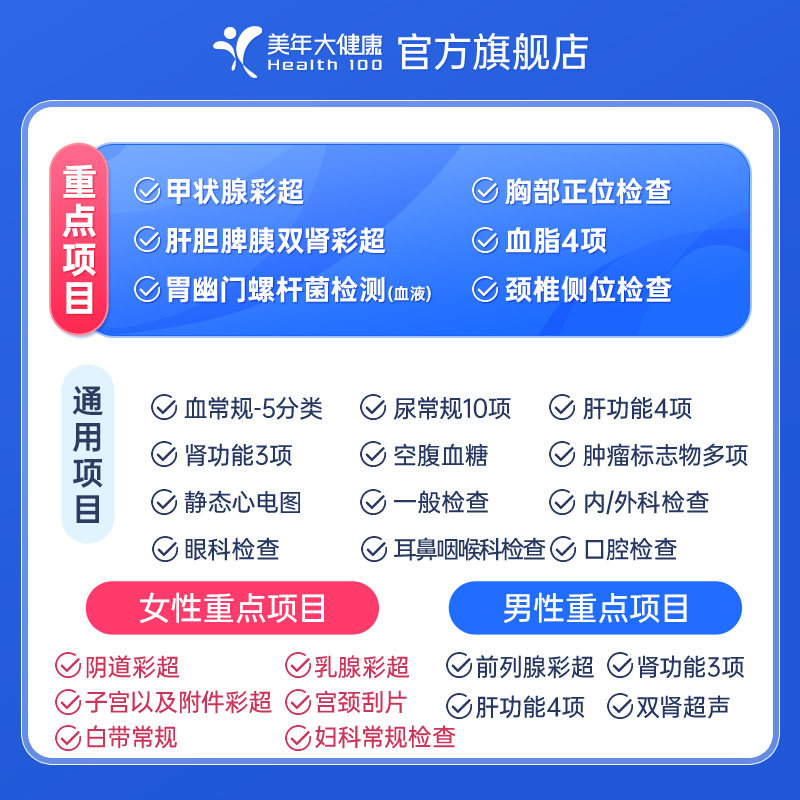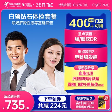 美年大健康旗舰店白领钻石全身体检23TMMN00入职男女可用体检报告