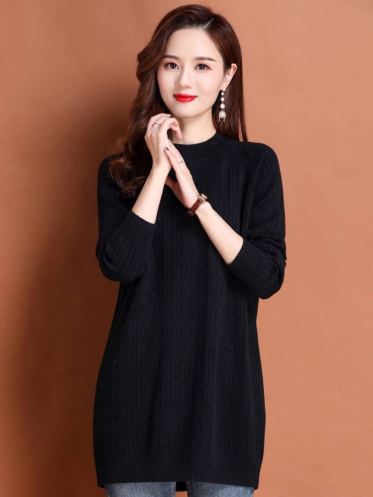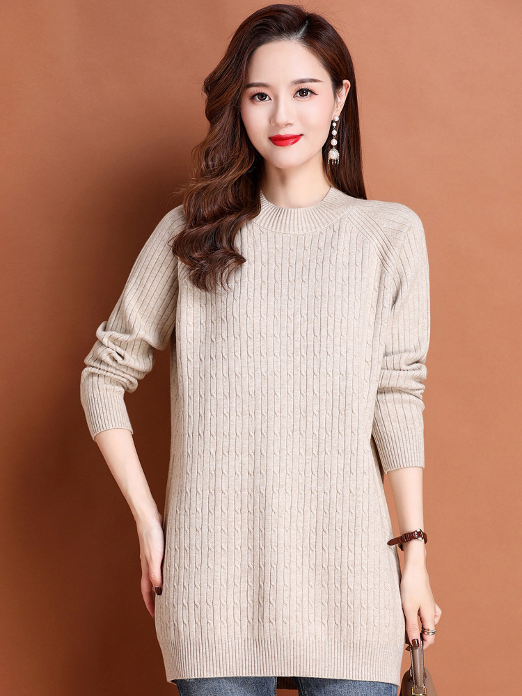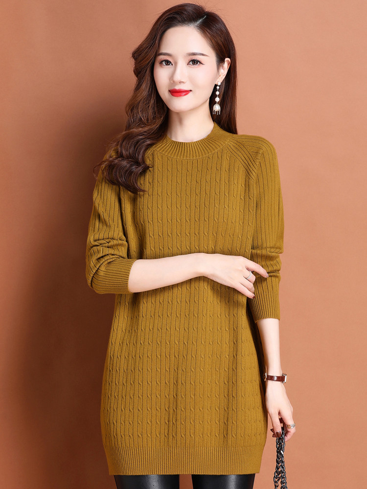 羊毛衫女秋冬妈妈中长款宽松遮肚子针织打底衫洋气百搭大码毛衣裙