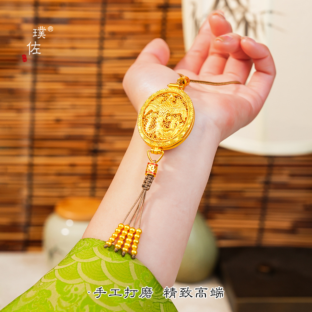 铺家同款沙金花丝龙凤香囊项链新中式凤凰于飞情侣毛衣链男女