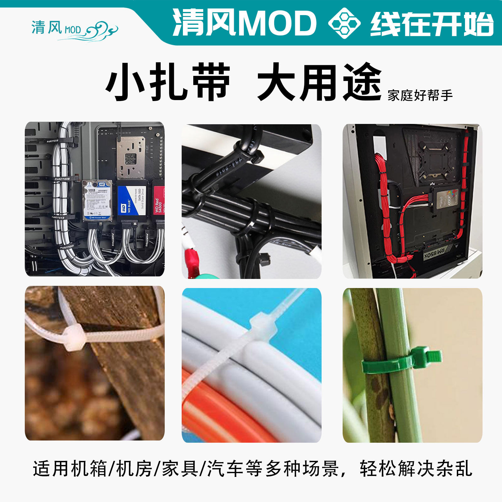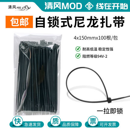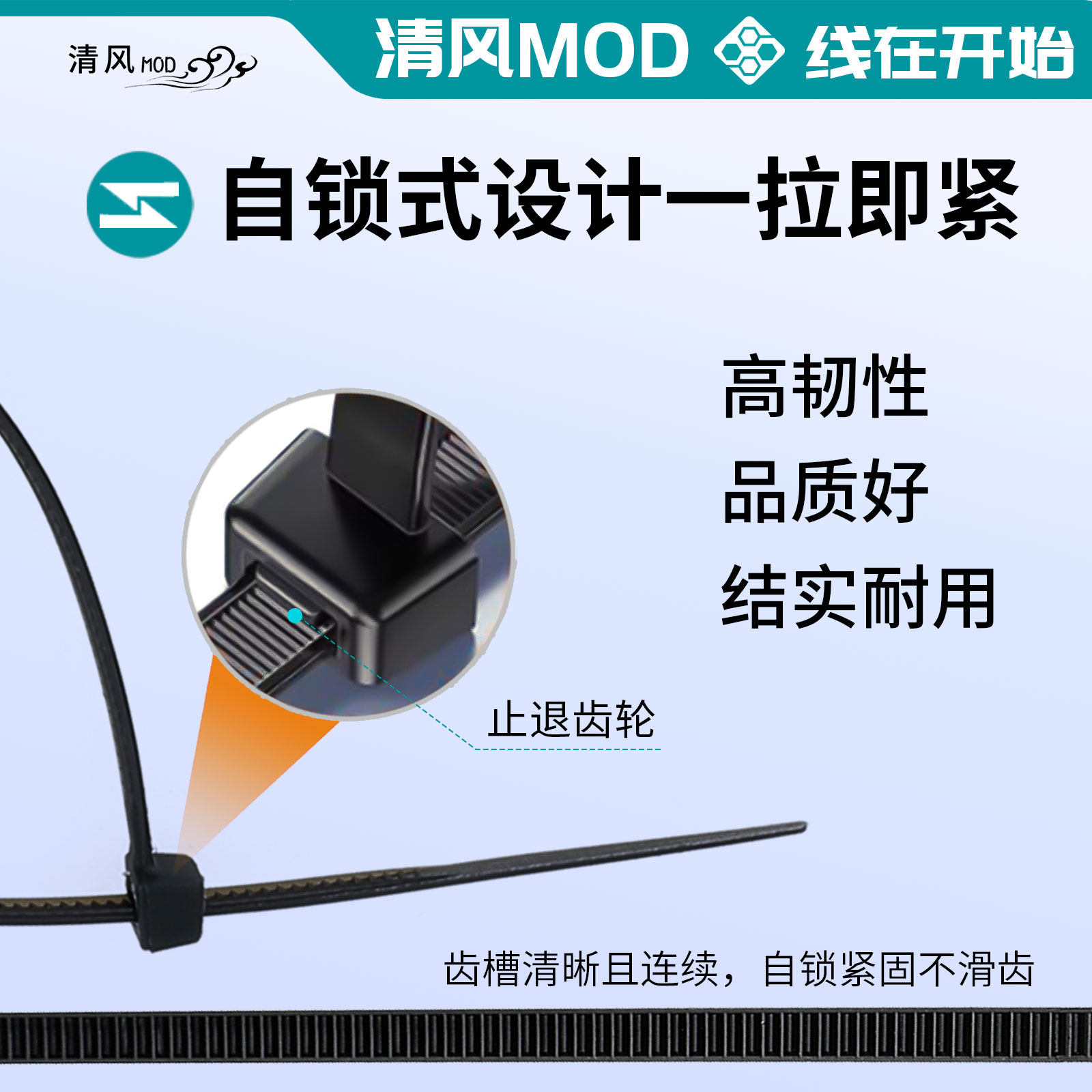 清风MOD电脑机箱理线背线理线带黑色4*150自锁式塑料绑带线束包邮