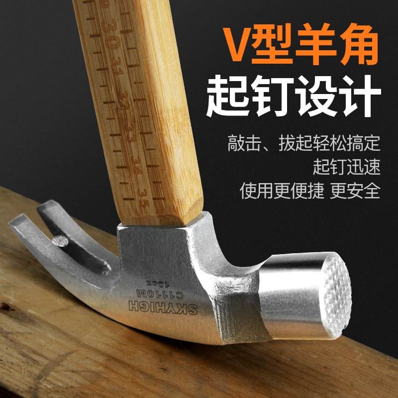 澳新工具竹柄羊角锤子方头木工锤直角铁锤榔头钉锤带磁竹把子奥新