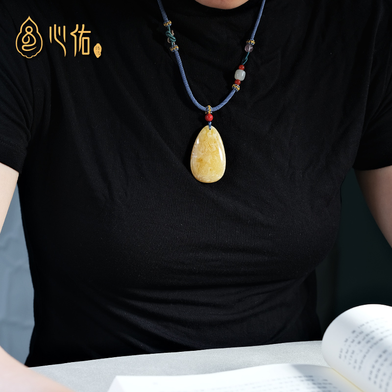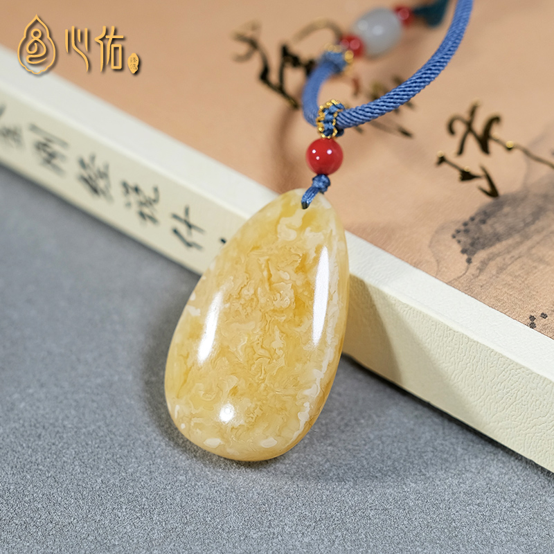 天然正品真蜜蜡水滴吊坠项链男款 鸡油黄白花琥珀锁骨链女士配饰