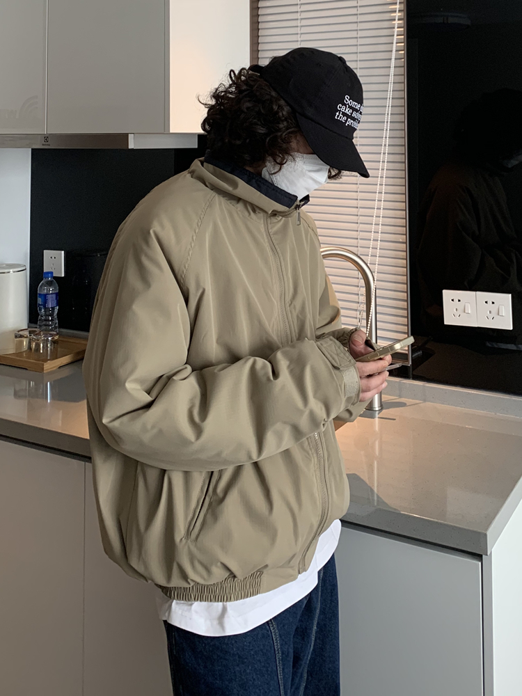UPDAYWANG 小撞色基础款冬季加厚保暖棉服男 立领情侣复古棉衣潮