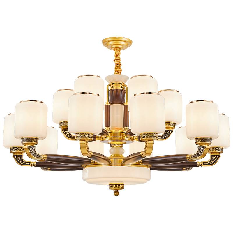 全铜新中式客厅主灯实木中国风大气别墅大厅餐厅卧室吊灯中山灯具