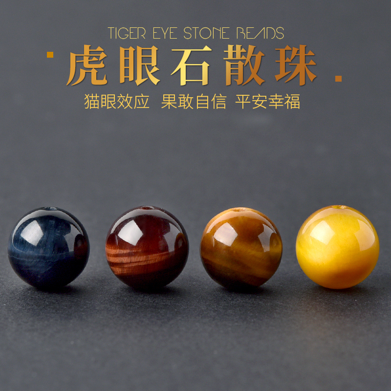 天然金虎眼石手链散珠子蓝红黄虎晴石手串DIY串珠水晶鹰眼石配件