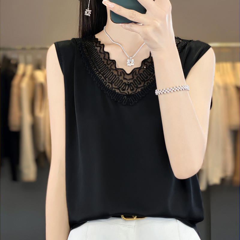 蕾丝V领真丝背心吊带女显瘦桑蚕丝夏季新款西装内搭打底无袖上衣