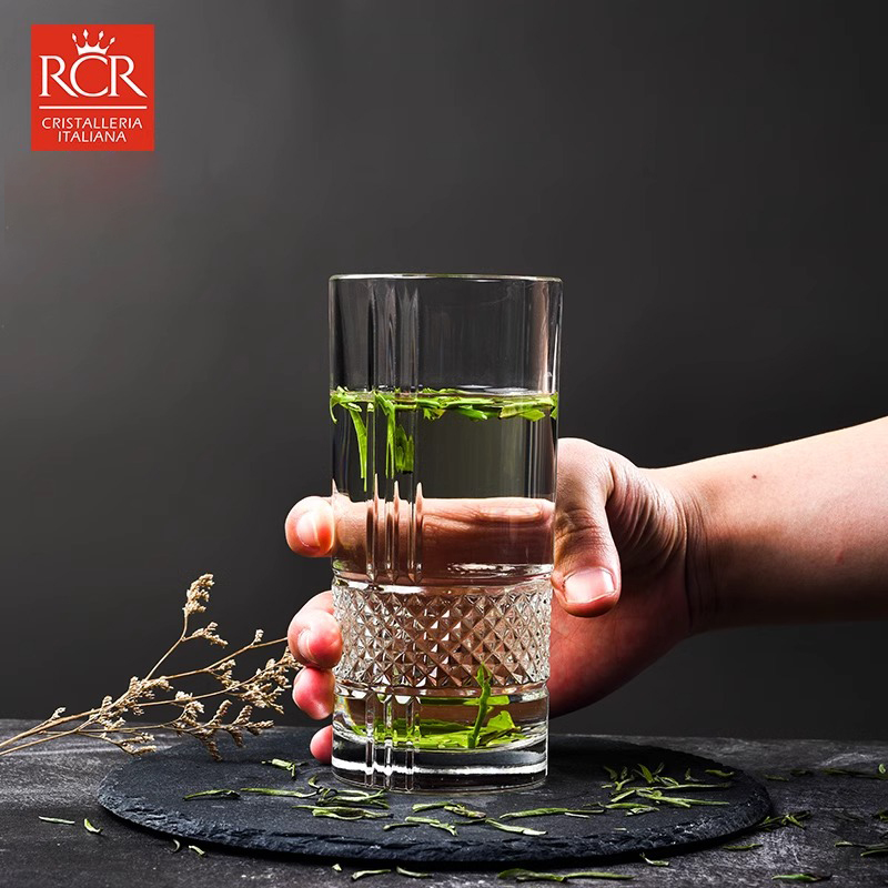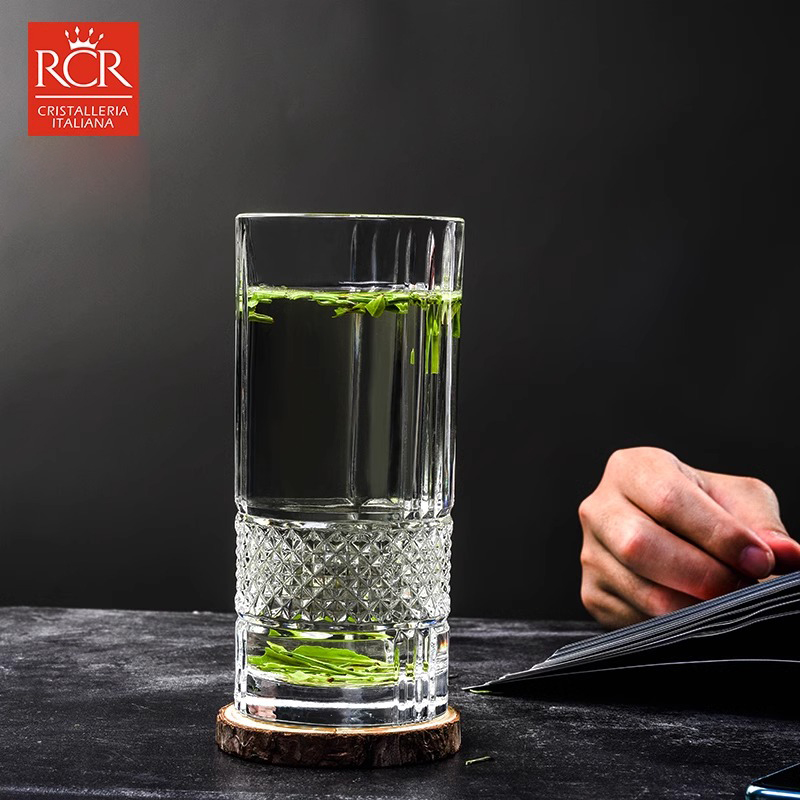 rcr进口刻花水晶玻璃泡茶杯果汁杯家用透明啤酒杯高身喝水杯子
