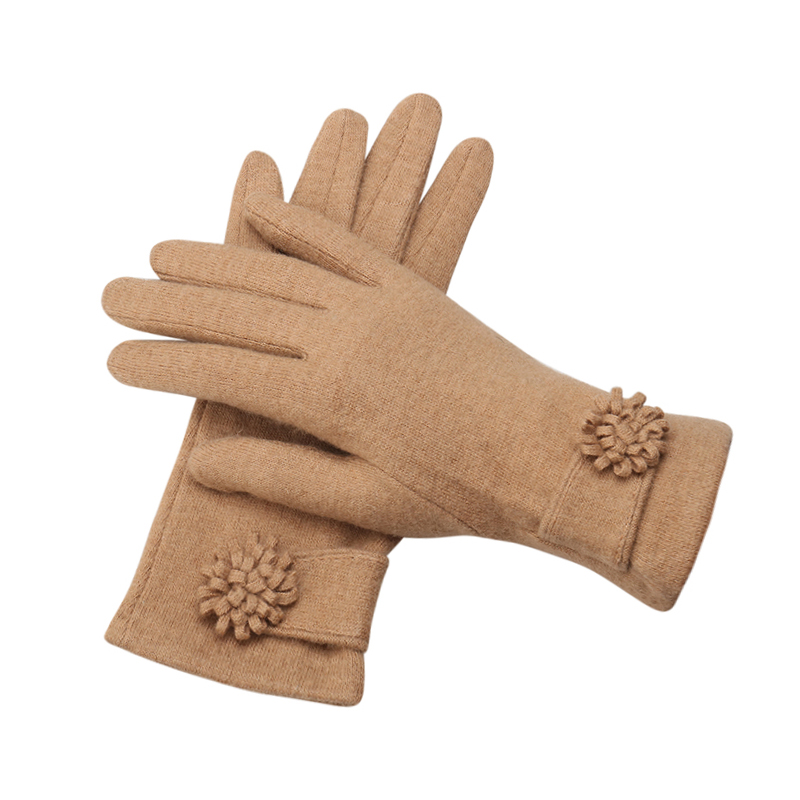 新款春秋冬季女士加绒加厚羊毛羊绒触屏手套弹力针织保暖短款防寒