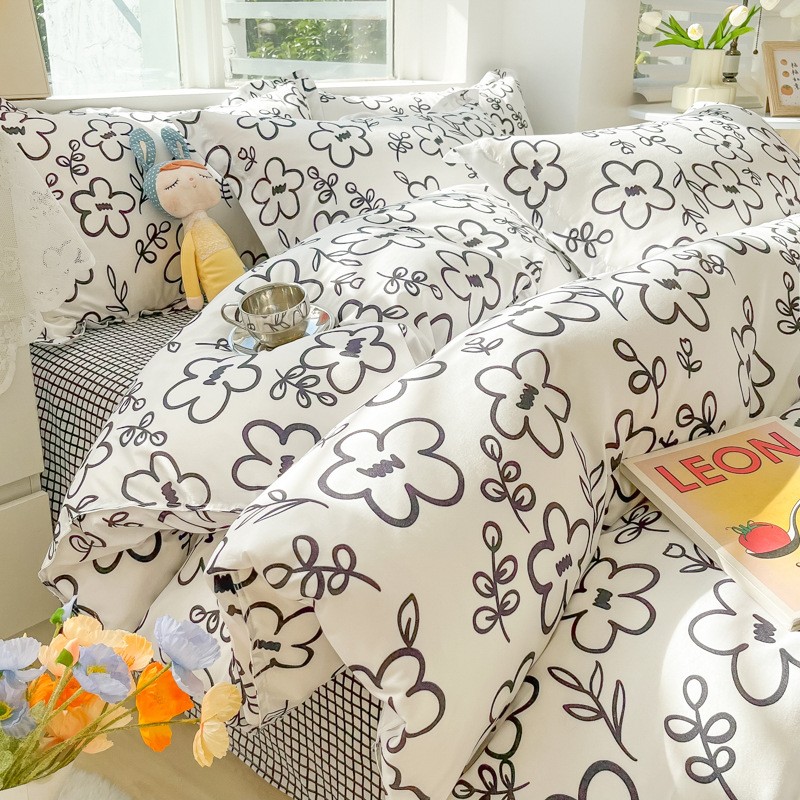 化纤面料四件套卡通床单被套印花简约可爱床上用品学生三件套轻奢