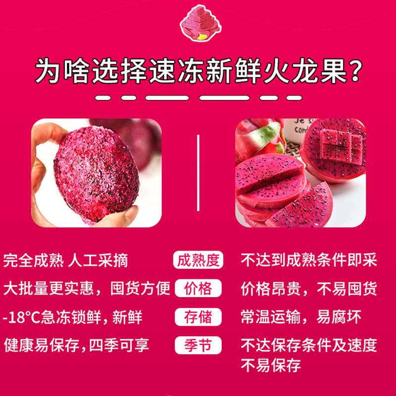 冷冻火龙果1kg新鲜红心火龙果肉速冻去皮烘焙蛋糕饮品奶茶店用
