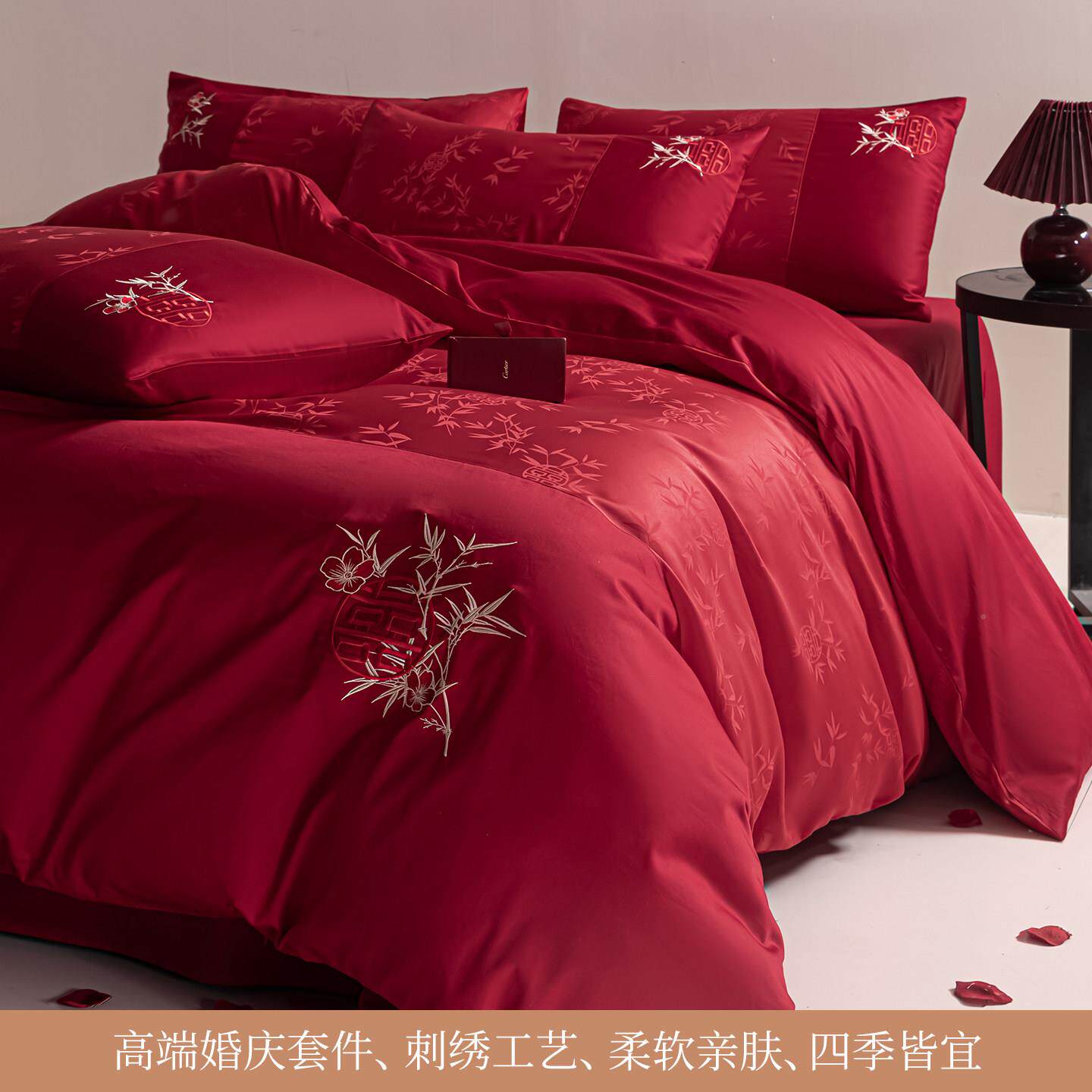 高级感花结婚四件套大上色婚庆床单被套罩SBS-2115喜被婚红床婚嫁