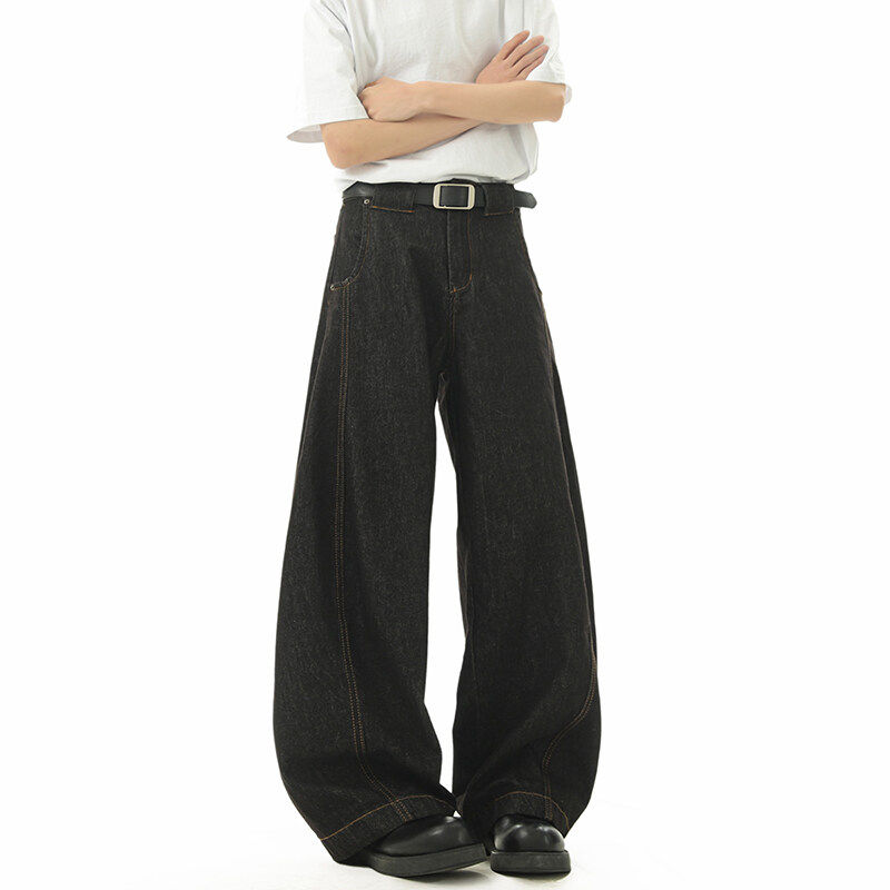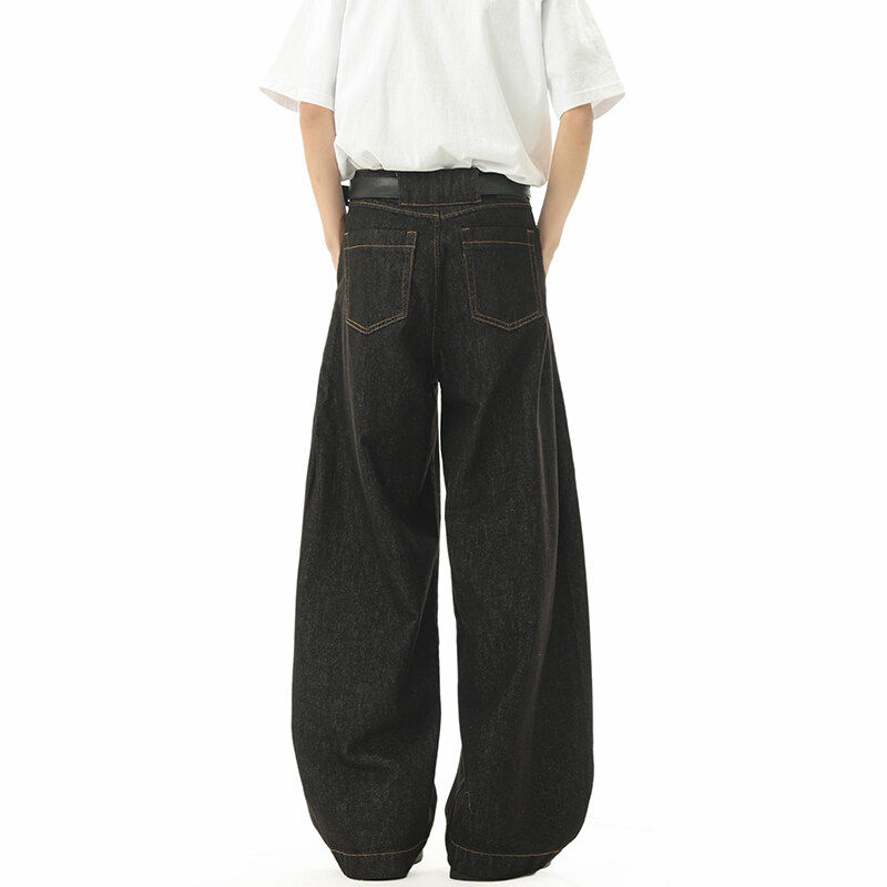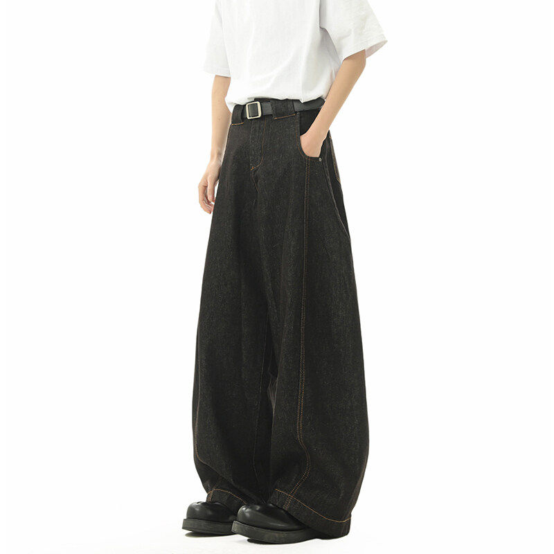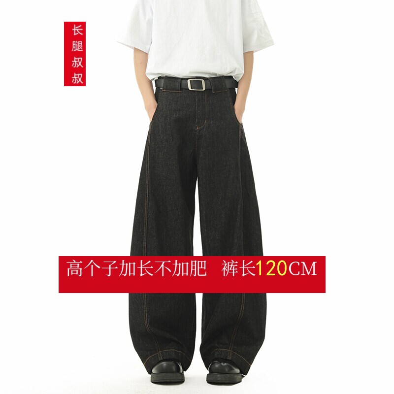丹宁原色水洗弯刀裤牛仔裤190高个子加长男裤120CM宽松阔腿长裤男
