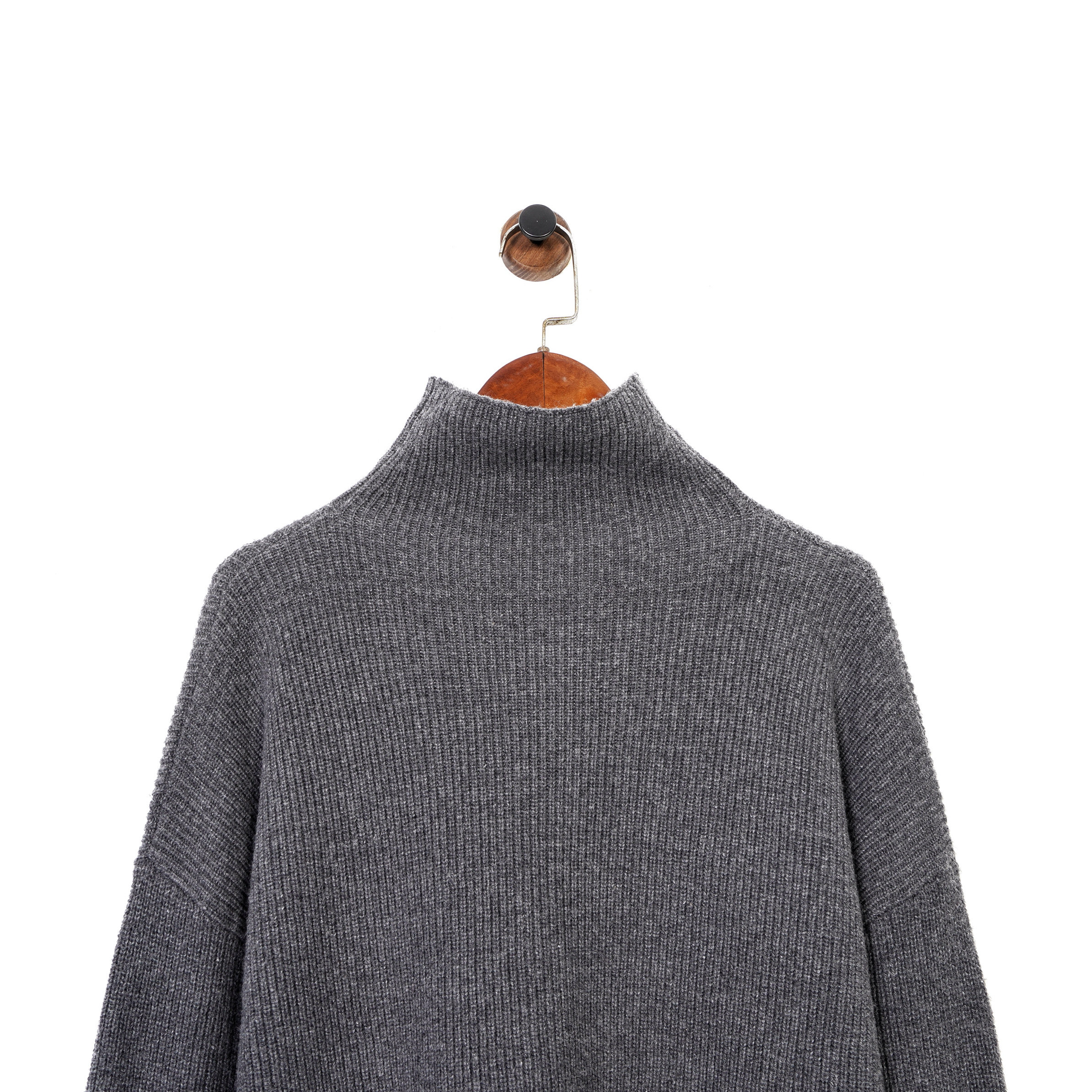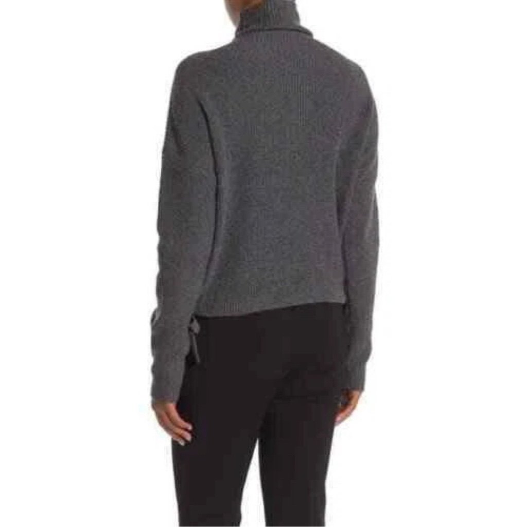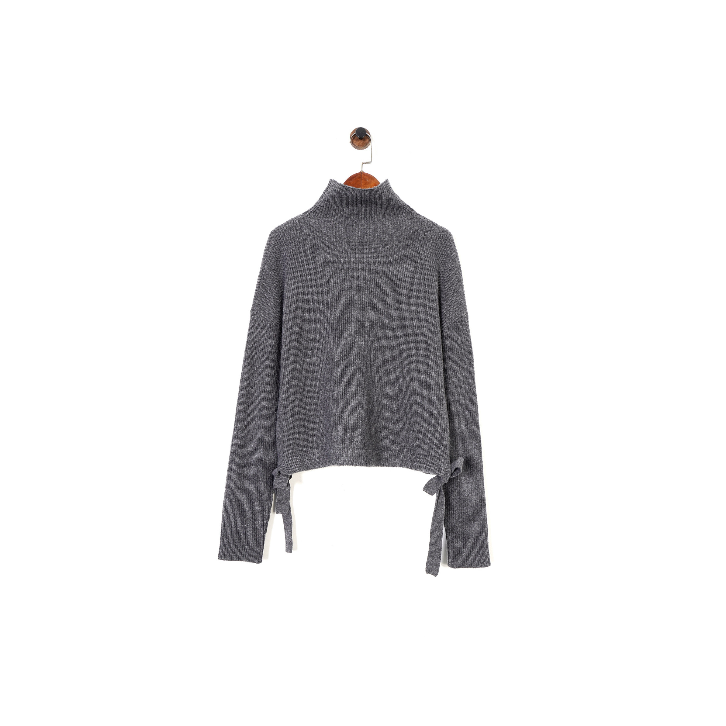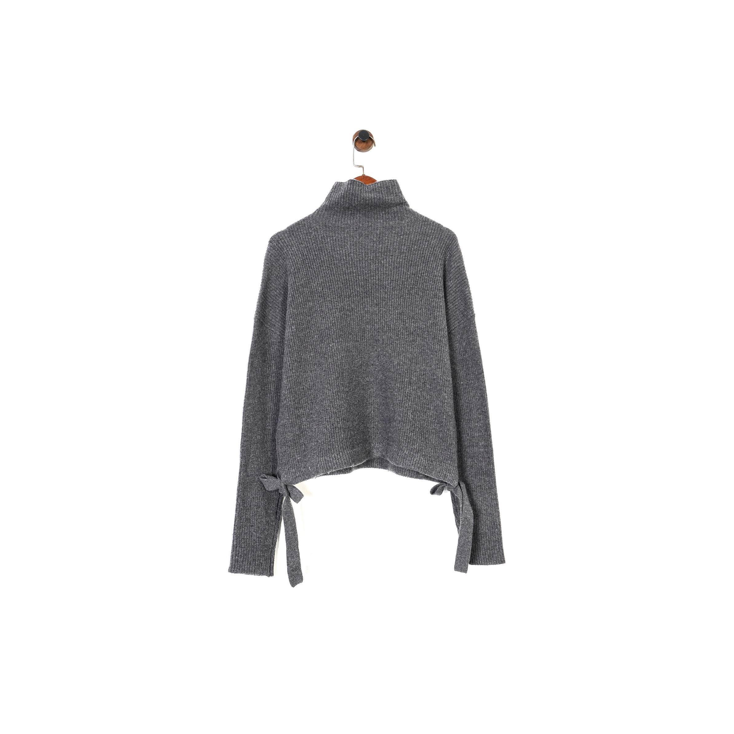 巴黎设计师B*BG 女款 羊毛/棉 深灰色罗纹高领侧系带长袖毛衣