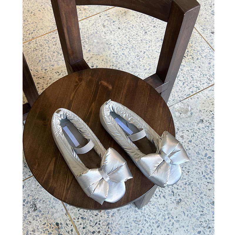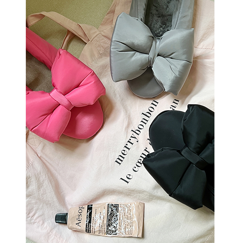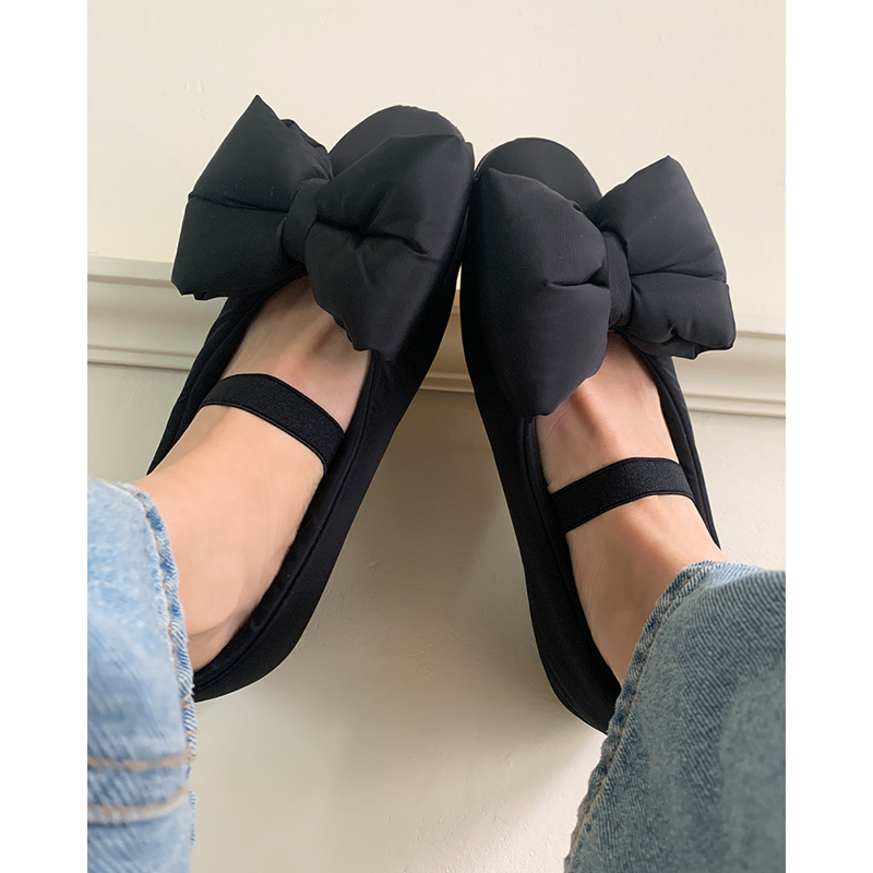 软软糯糯~小小苏韩国可爱一字带小棉鞋女平底浅口大蝴蝶结奶奶鞋