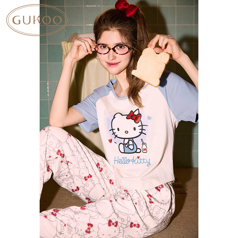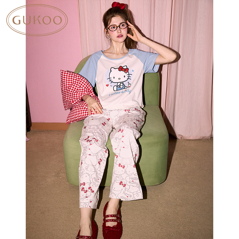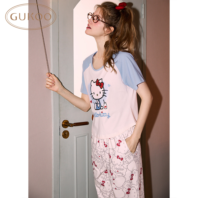 Gukoo/果壳女士睡衣春秋轻软舒适高品质家居服外穿短袖长裤套装