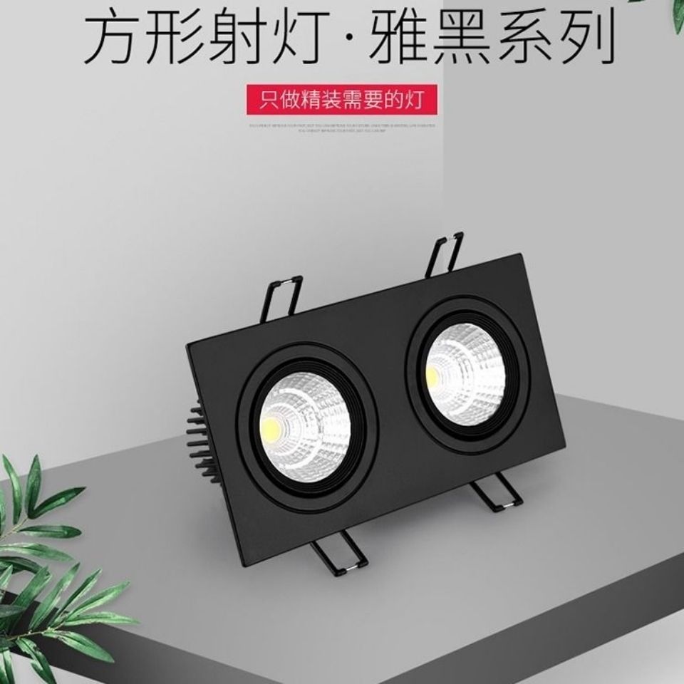 双头射灯led嵌入式黑色COB斗胆灯孔灯长方形开孔20*10格栅天花灯