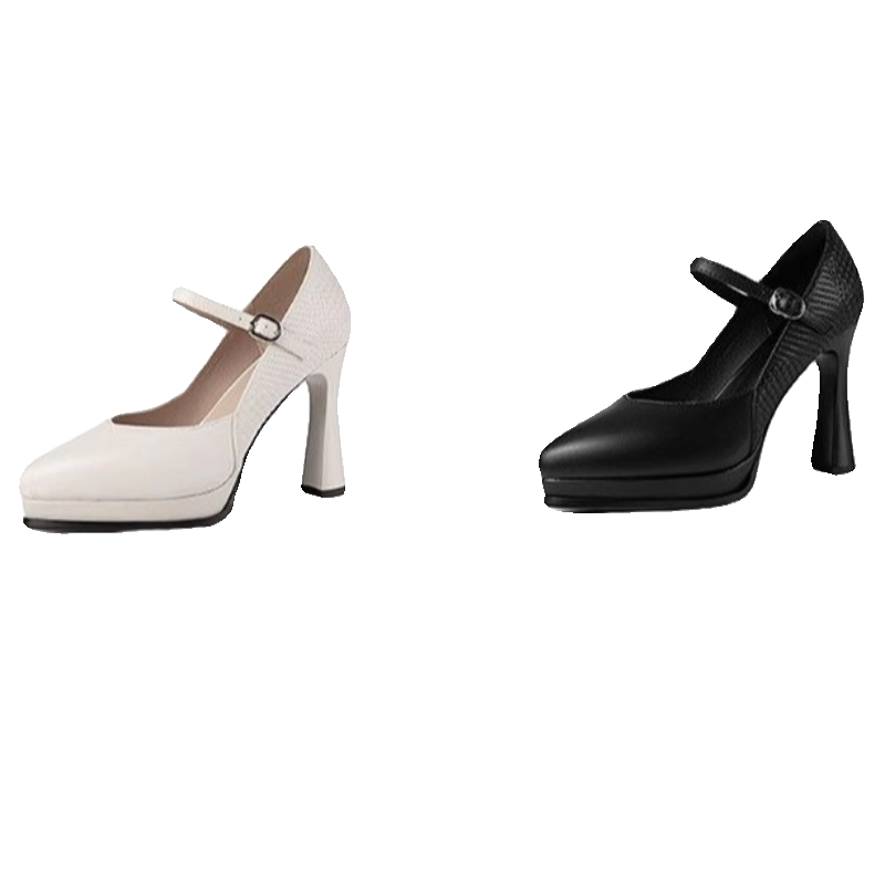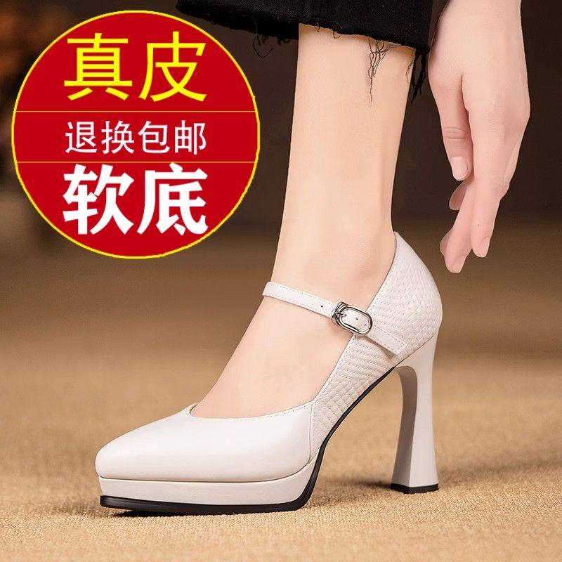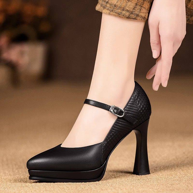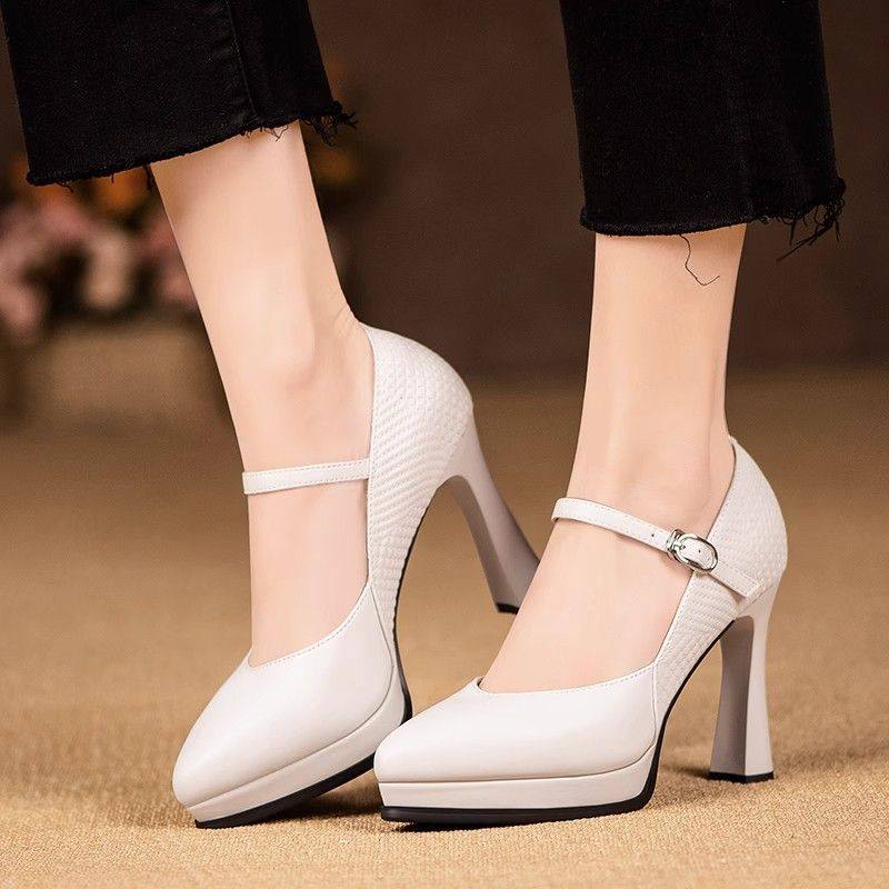 纯色时尚超粗高跟名媛气质高跟鞋2024新款防水台尖头鞋女浅口单鞋