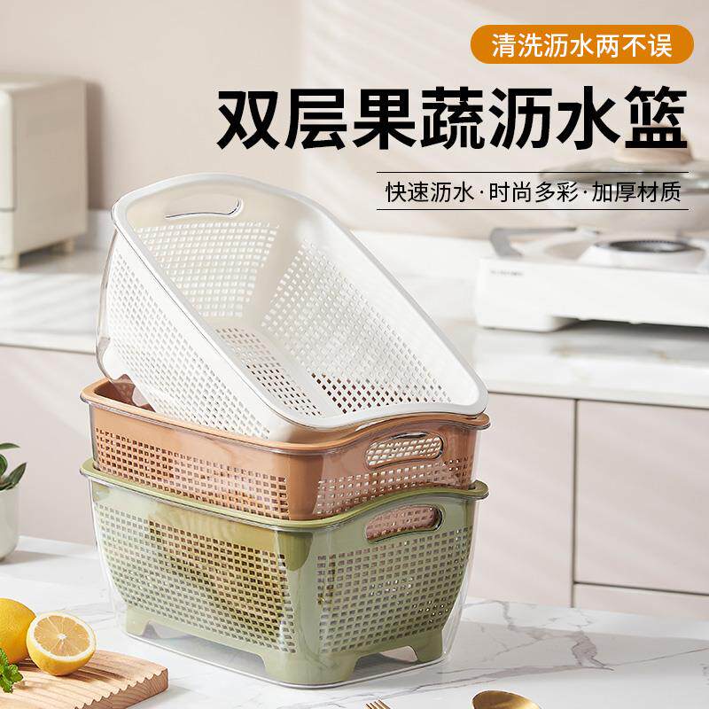 2024新款沥水篮水果盘客厅茶几淘米滤水篮厨房家用双层洗菜盆大号