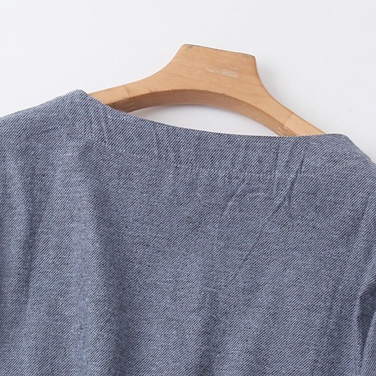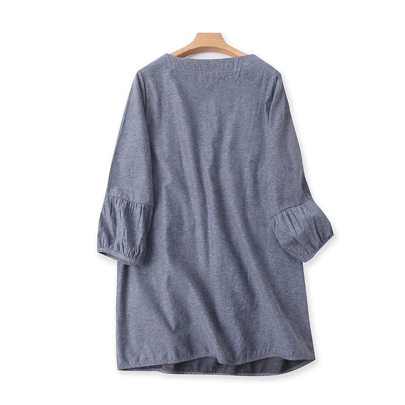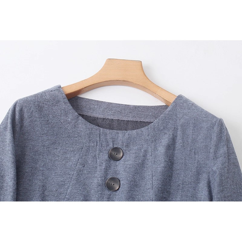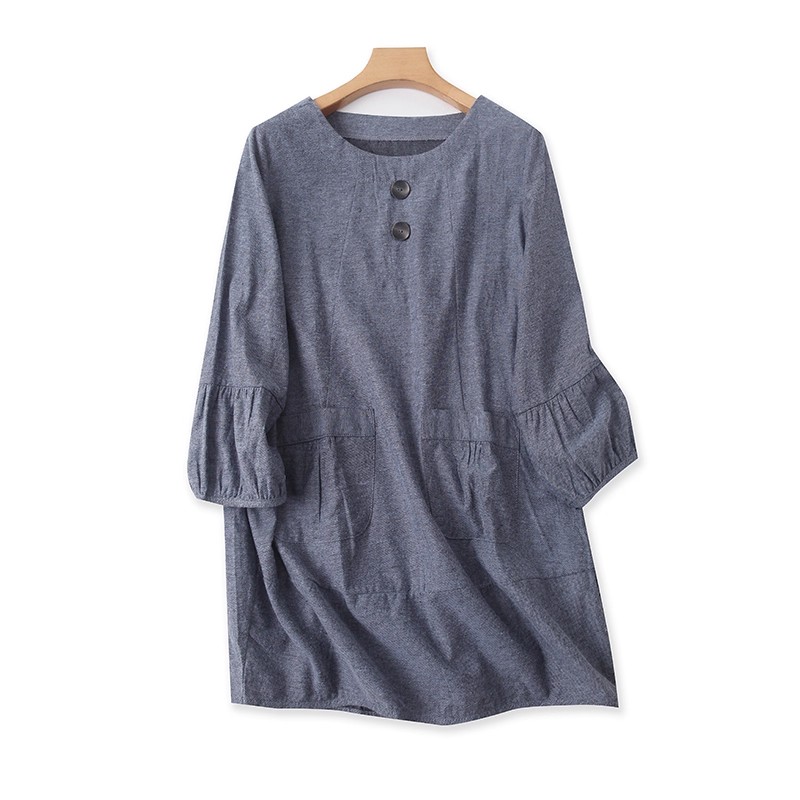 棉麻圆领长袖连衣裙 春季新款宽松套头休闲中长款女时尚裙子11021