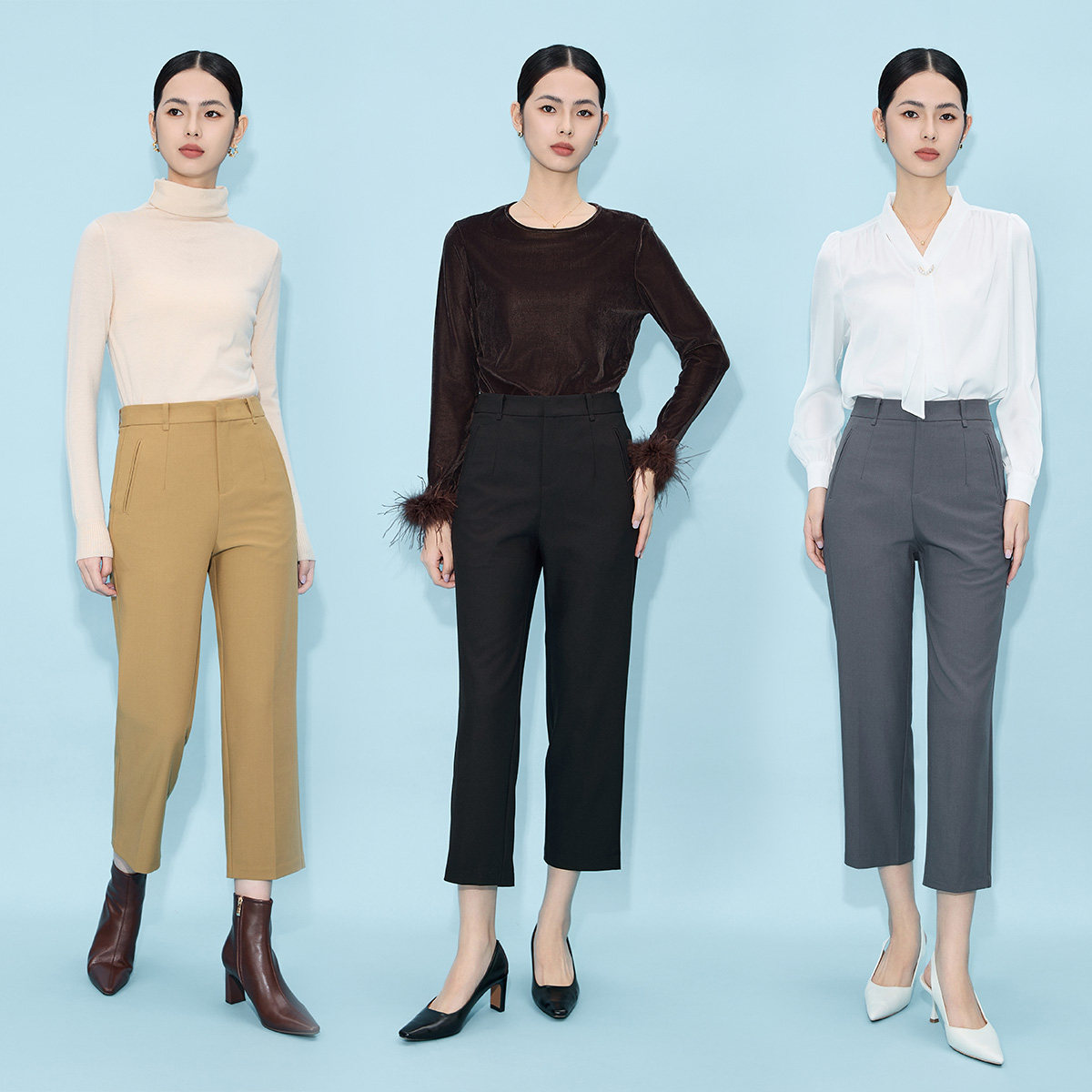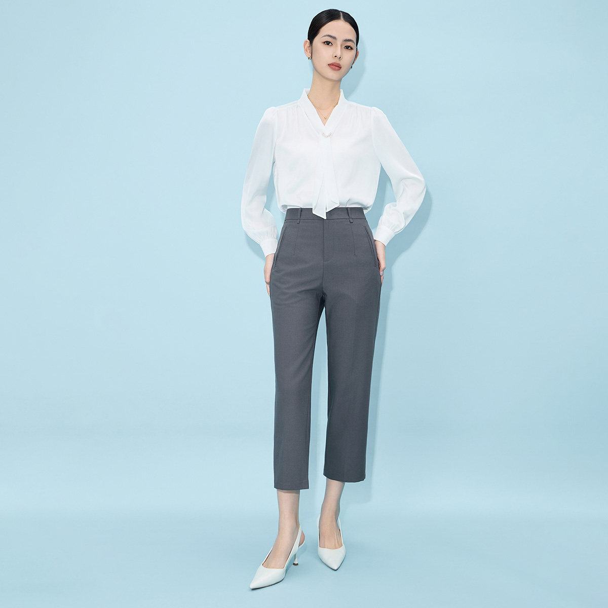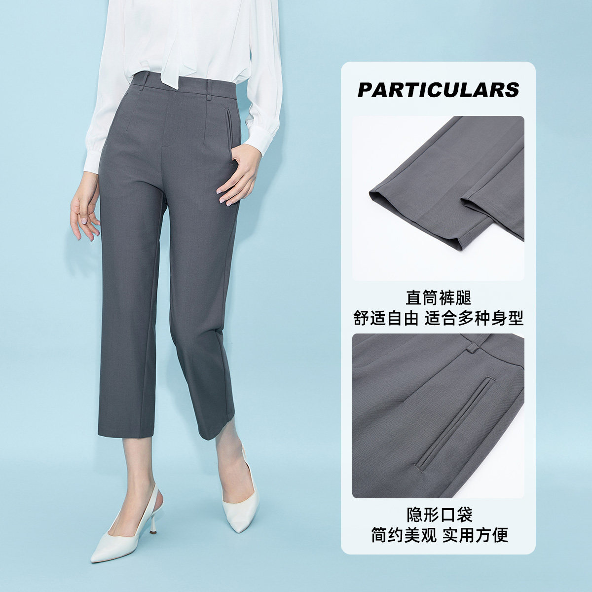 马天奴百搭纯色高腰直筒西裤