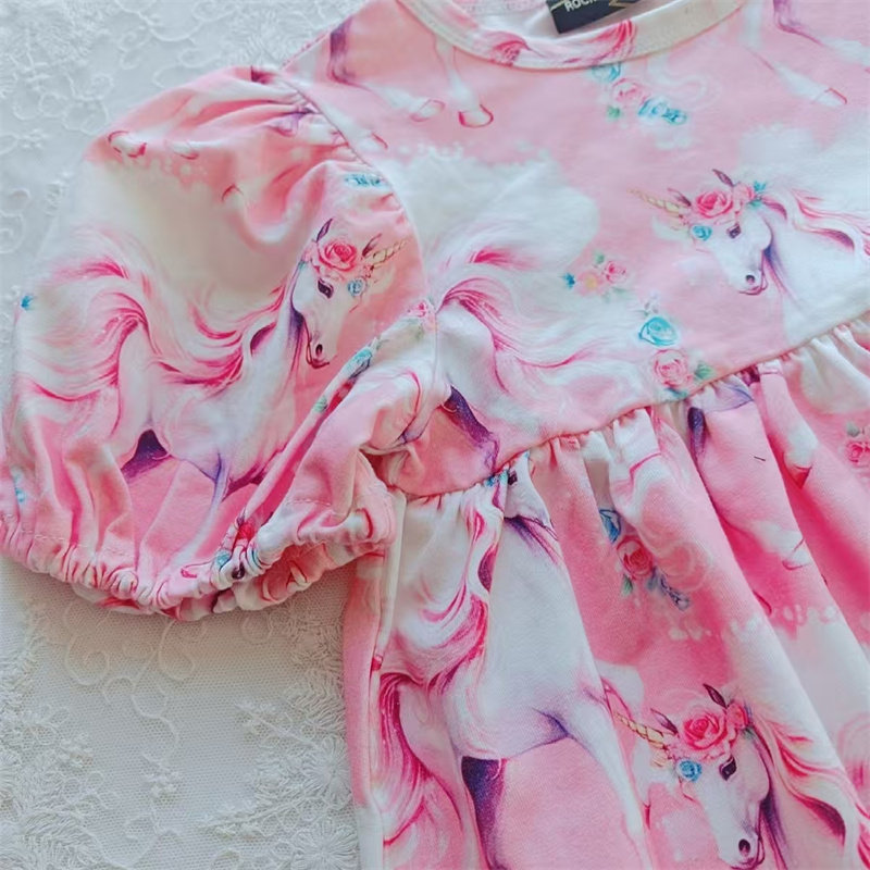 美美独角兽 澳R家 三件包邮女中小童4-8岁公主大裙摆泡泡袖连衣裙