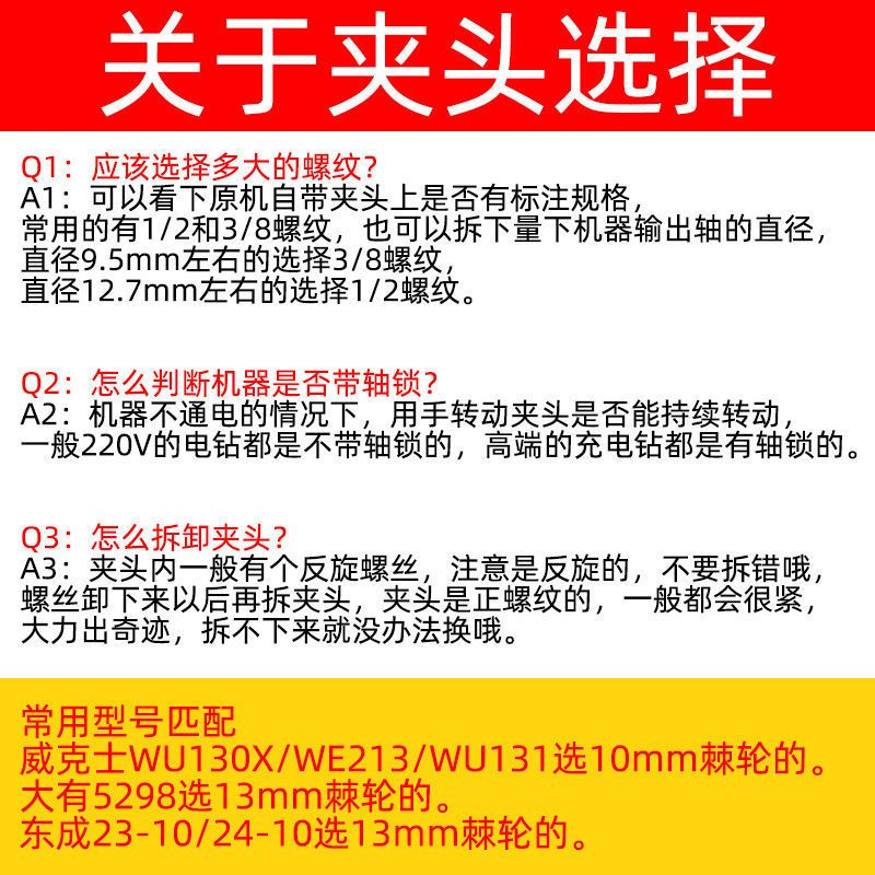 全钢棘轮夹头金属外壳自锁卡头10/13mm手电钻配件转手紧卡钥匙