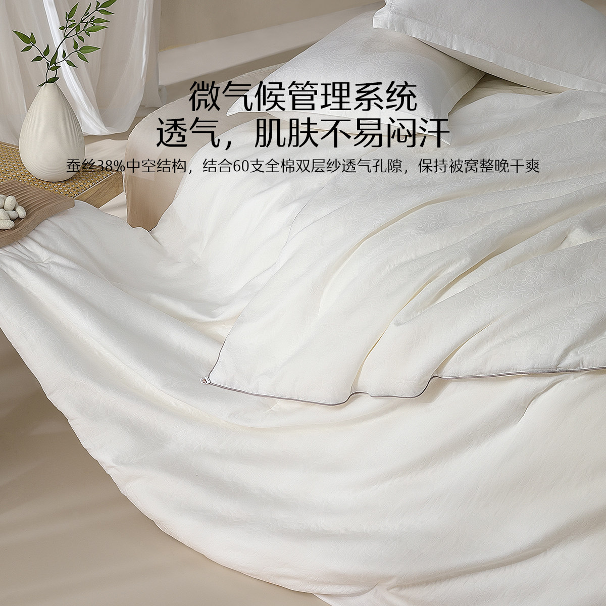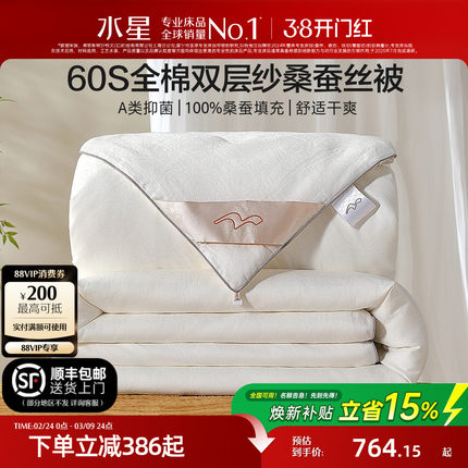 水星家纺桑蚕丝被芯60S全棉双层纱蚕丝被保暖四季被子子母被床品